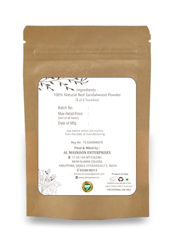 ChatGPT Certainly! Here's a description for AL MASNOON Red Sandalwood Powder: Indulge in the natural essence of AL MASNOON Red Sandalwood Powder also known as Lal Chandan Powder renowned for its exceptional benefits for skin and face care. Each pack contains 50g of this 100% natural and pure powder crafted to elevate your beauty regimen. Derived from the heartwood of red sandalwood trees this powder is treasured in Ayurveda for its anti-inflammatory and soothing properties. It helps in reducing skin inflammation acne and blemishes while also providing a brightening effect for a radiant complexion. Free from additives and chemicals AL MASNOON Red Sandalwood Powder ensures a gentle and effective skincare routine. Incorporate it into your face masks scrubs or herbal pastes to harness its purifying and rejuvenating benefits.