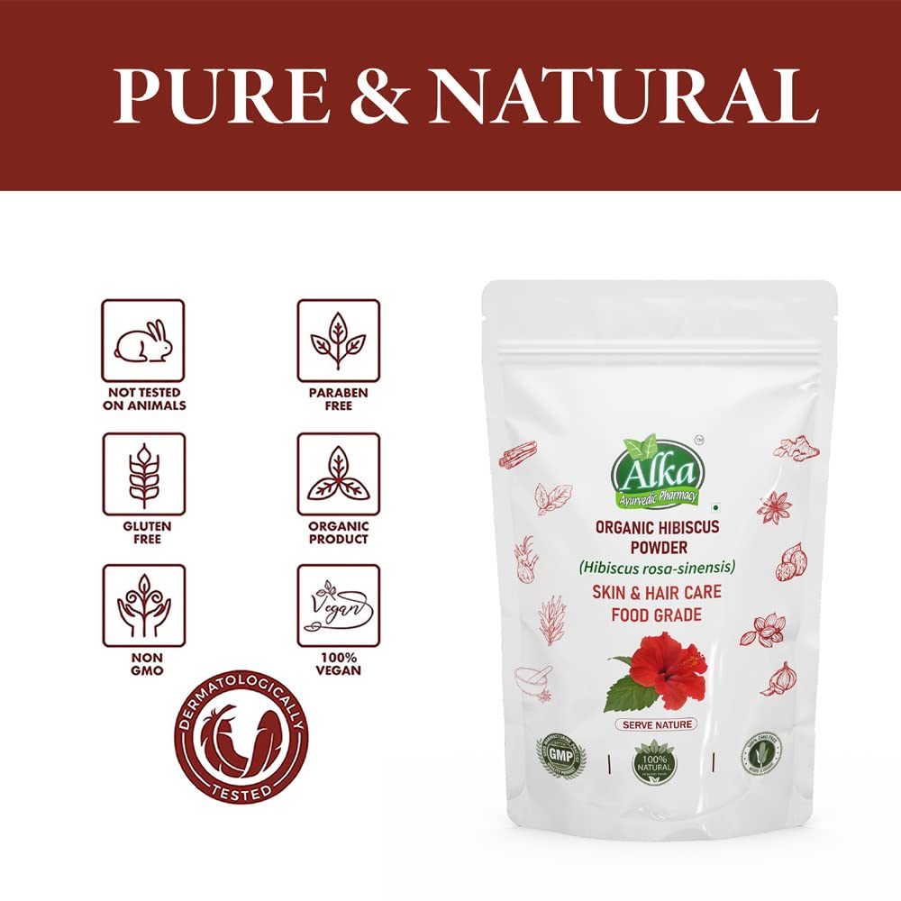 Hibiscus plants are known for their large colorful flowers. Hibiscus powder organic for face has healing property that helps in soothing fine lines and wrinkles and glow your skin. These blossoms can make a decorative addition to a home or garden. Helps condition your hair making it soft and manageable. It is an excellent natural hair loss remedy that stops frequent hair fall. The flowers and leaves can be made into teas and liquid extracts that can help treat a variety of conditions. In Ayurveda hibiscus is one of the most renowned herbs for promoting hair growth.