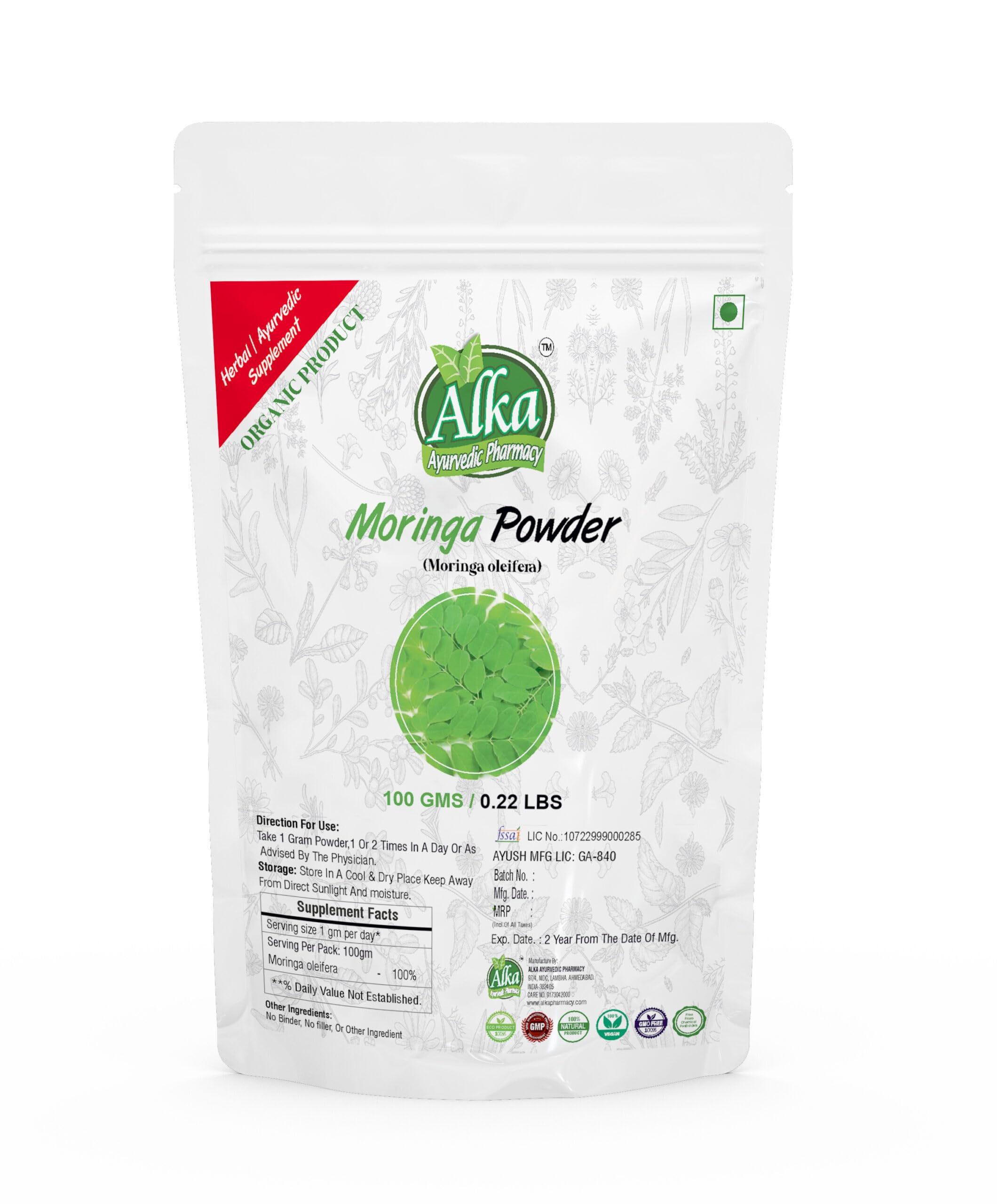Moringa Powder comes with a delicious flavor with 25% plant protein including all 9 essential amino acids 24% fibre rich source of iron vitamin K & E source of vitamin A & calcium and antioxidants. It is a natural source of these nutrients it is highly bio-available and so our body can absorb the benefits more easily. Key Ingredients: Moringa Oleifera leaf Key Benefits: It is 100% natural with no added sugar and have an anti-diabetic properties It reduces tiredness & fatigue It gives radiant skin and make it glow It contributes to normal vision and keep eyes healthy It supports energy-yielding metabolism in the body It contributes to the normal function of digestive enzymes