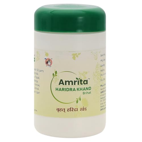 Amrita Haridra Khand is an anti-allergic Ayurvedic formula that is effective on skin ailments like rashes, itching, boils and allergic rhinitis. It contains turmeric which is a powerful healer and a natural way of treating skin disorders. It helps to improve physical, mental health and immunity. It is also quite effective in treating the problem of a chronic cough.