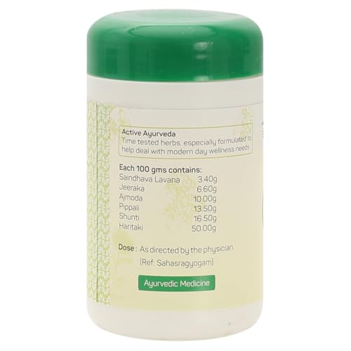 Amrita Vaishwanar Churn is an Ayurvedic medicine available in powder form used for the treatment of rheumatoid arthiritis, constipation and other digestive disorders. It helps maintain the vata and pitta dosha balance in the body.In Sanskrit, Vaishnavara means fire, hence indicating that the product is meant to correct the digestive fire in the body.