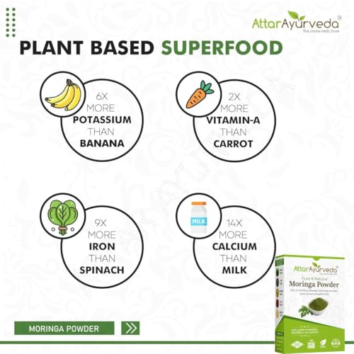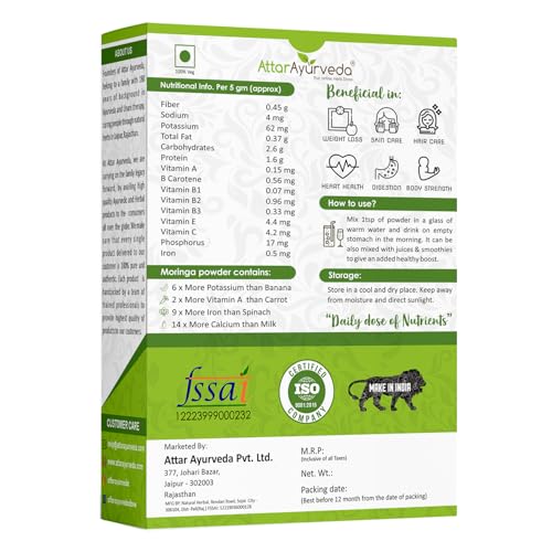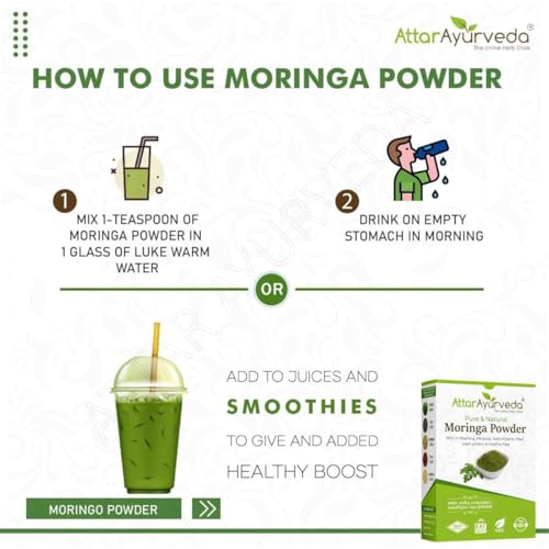 • 100% NATURAL: Attar Ayurveda Moringa powder is 100% pure and natural and is free from any chemical or preservative. It is cultivated organically.