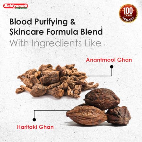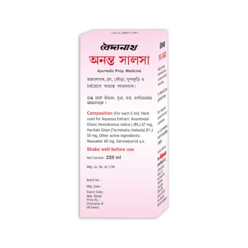 Baidyanath ananta salsa is a strong formulation of anantamool and other ayurvedic ingredients which helps to purify the blood and gives relief from the diseases caused by impure blood. It takes a good care of your skin and protects it from other skin diseases like itchiness scabies as well as hair fall.