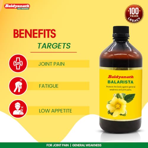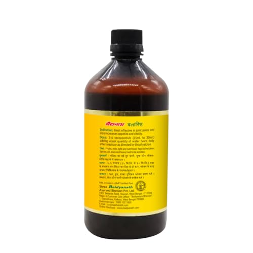 Supportive of neurological health providing relief from conditions like neuralgia arthritis and spondylosis. Widely regarded as therapeutic for arthritic disorders and spinal conditions can help in the management of cervical spondylosis frozen shoulder lower back pain knee pain due to osteoarthritis etc. Balarishta also has restorative action and improves body strength and nourishes the vata organs.