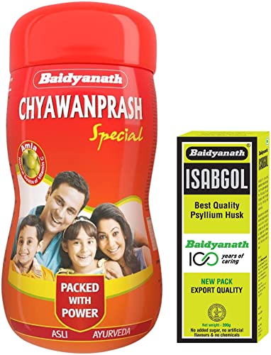 Baidyanath Chyawanprash Special - 950g with 50g Madhu Free | Immunity Booster | Enhances Strength & StaminaProtect your body every day and give your mind a dose of nature with Baidyanath Chyawanprash Special. Immunity and health derived from ancient Ayurvedic scriptures to fuel modern lives. Baidyanath Chyawanprash Special is enriched with Vitamin C-rich Amla and 52 essential herbs like pipal giloy madhu chhoti elaichi safed chandan and ashwagandha. It is loaded with antioxidants to neutralize the harmful effects of free radicals and boost energy to fight fatigue and tiredness. With all the goodness of nature Baidyanath Chyawanprash Special is a GMP certified product which is safe and effective for all age-groups. The product is plant-based made from herbs and hence is vegan. We gather the most efficacious herbs from different parts of India and pour our 100 years of knowledge and skills in making our products. A naturally healthy and immunity boosting solution for the whole family. Consume 1-2 tablespoonfuls twice daily for attaining the best results.Baidyanath Vansaar Isabgol - Psyllium Husk Powder - 200gm | Effectively Relieves Constipation | Fibre Supplement For DigestionBaidyanath lsabgol (also known as Psyllium husk) is a natural vegetable product derived from the upper coating of Plantago Ovata seeds after through milling sieving and winnowing. Isabgol helps in maintaining a healthy digestive tract and relieves constipation and digestive distress. Baidyanath uses specially selected lsabgol seeds to ensure only the best quality psyllium husk is produced. It is a rich source of fibre and is gluten-free.