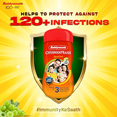 Extra energy active mind and increased immunity are the three major benefits of Baidyanath Chyawanprash Special. Years of establishment and potentiality of the brandâs promise has already made us stand out from the crowd. However when it comes to Chyawanprash. The day-to-day illness which is a common trouble in today's world Baidyanath Chyawanprash Special can help bolster your bodyâs immunity to fight them.