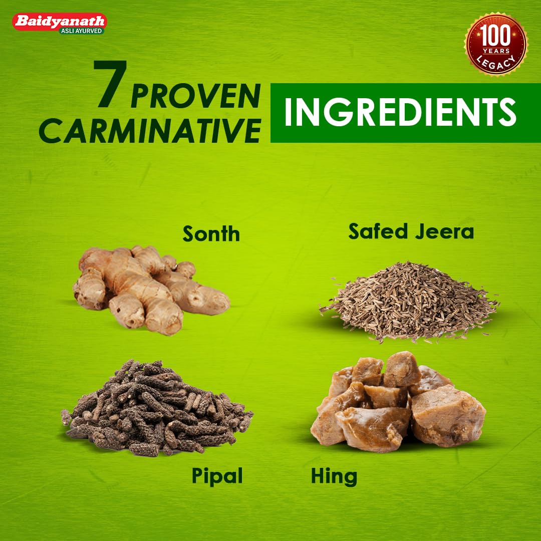 Baidyanath Hingwastak Churna is a traditional Ayurvedic formulation made with Hing Ajwain Sonth Kalimirch Pippali Safed Jeera and Kala Jeera. These ingredients are well-known in Ayurveda for their use in supporting digestion and gut health.