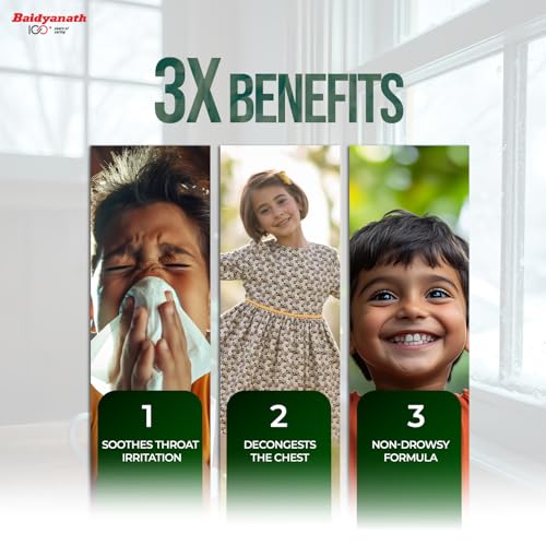 Baidyanath Kasamrit Herbal Cough Syrup acts as an herbal medicine for common cough and cold sneezing running nose nasal congestion and sore throat. It helps relieve itchy scratchy throat and liquifies and expels distressing and irritating cough. Consume 1-2 teaspoons thrice a day or as directed by the physician.