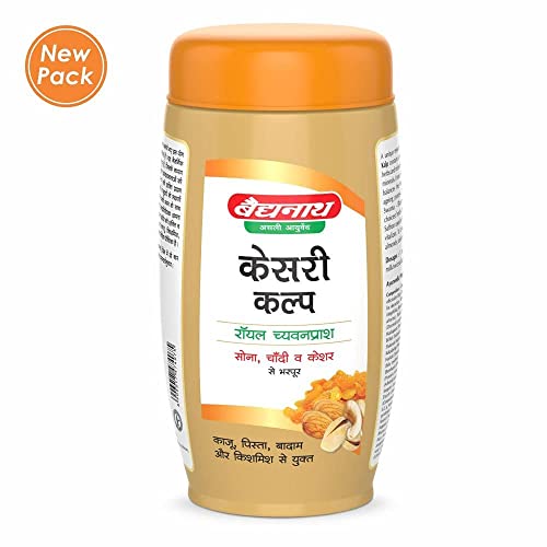 Anti-ageing tonic for rejuvenation and vitality; enriched with Gold Silver and Saffron with 44 herbs and minerals. Baidyanath Kesari Shakti Kalp Chyawanprash is a unique research formula and excellent Ayurvedic tonic formulated with the combination of rare herbs rich spices and fruits by renowned Ayurvedic Scholars & Baidyanath Research Foundation. The materials are very carefully chosen to impart the right benefits that rejuvenate the body and bring back youthful energy and vigor.