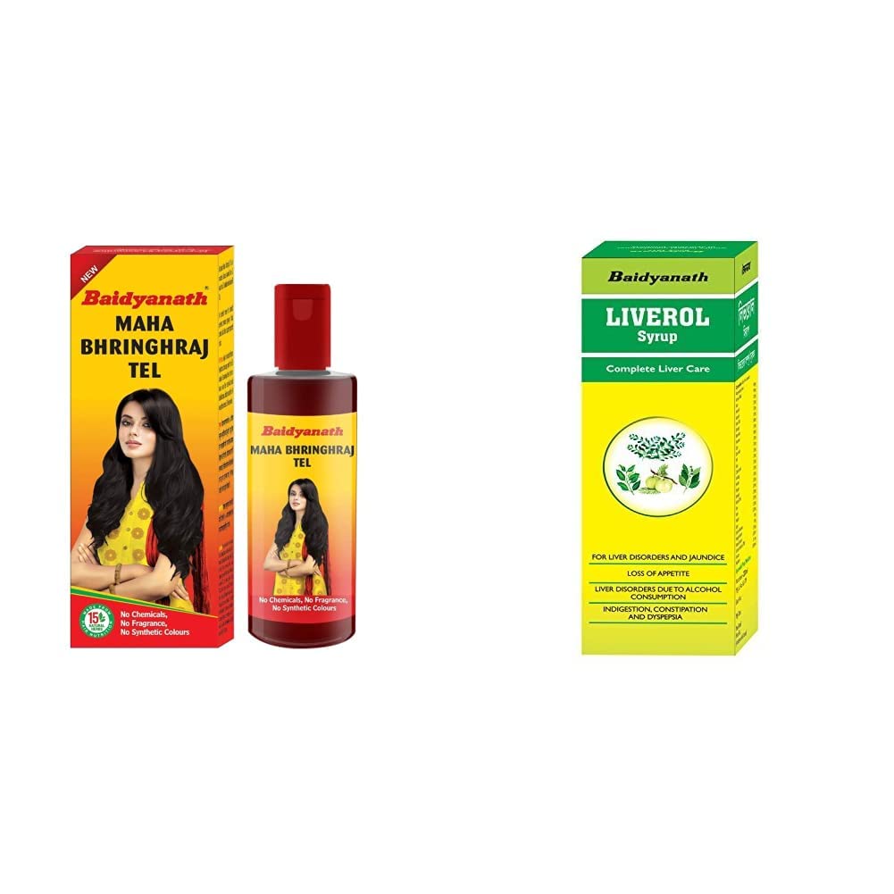 Baidyanath Mahabhringraj Tel (Original) | Hairfall Control | Ayurvedic Medicated Hair Oil | 4X More Effective | For All Hair Types (Male & Female) - 200mlBaidyanath Mahabhringraj Tel is considered really effective for promotoing overall hair health. Made up of best quality herbs Mahabhringraj tel not only helps the hair look shiny and lustrous but nourishes it from within. Mahabhringraj oil is also know to relieve pressure from the multiple pressure points present in the scalps. Mahabhringraj Oil considered best for advanced hair care contains hand plucked hair freindly ayurvedic herbs that prevent hair damage.Baidyanath Liverole Syrup - 450 mlIngredients: Water Extract fromKaranja (Nala) (Pongamia glabra)Kasni (Cichorium intybus)Kakmachi (Solanum nigrum)Kasaundi (Cassia tora)Arjun Chhal (Terminalia arjuna)Bhringraj (Eclipta alba)Bhumiamla (Phyllanthus niruri)Punarnava (Boerhaavia diffusa)Giloy (Tinospora cordifolia)Daru Haldi (Berberis aristata)Muli (Raphanus sativus)Amla (Emblica officinalis)Chitrak mool (Plumbago zeylanicam) Vaividang (Embelia ribes)Haritaki (Terminalia chebula)Pitpapra (Oldenlandia herbacea)Kalmegh ( Andrographis paniculata)Rohitk Chhal (Aphanamixis polystachya)Elwa (Aloe barbadensis)Kutki (Picrorhiza kurroa)Mulethi (Glycyrrhiza glabra)SugarSodium BenzoateNipagin SodiumNipasol SodiumSorbitol solution (70%)Annatto Raspberry