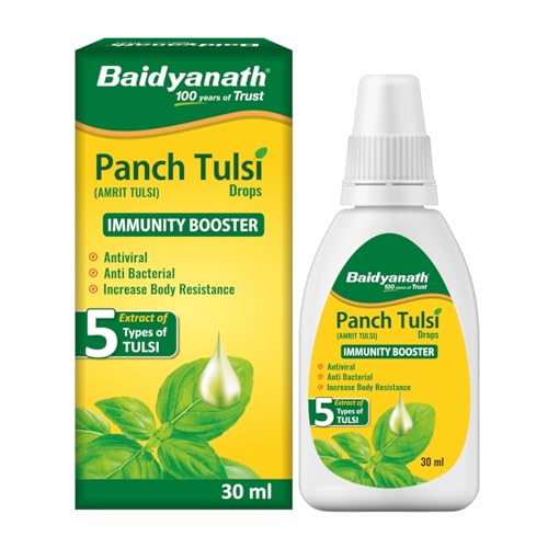 Baidyanath Ayurved Panch Tulsi Drops - 30 ml | Natural Immunity Booster with Goodness of Five Types of Tulsi