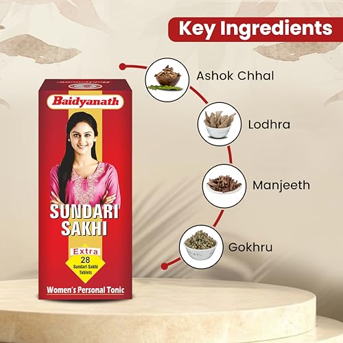 Start a journey towards holistic health and vitality with Baidyanath Sundari Sakhi â a specially composed Ayurvedic health tonic to nurture the unique needs of women. Infused with time-tested herbs and natural ingredients this tonic is your trusted companion on the path to wellbeing. Elevate your daily routine with Baidyanath Sundari Sakhi and embrace the natural essence of feminine wellness. Prioritize self-care and experience the synergy of ancient wisdom and modern convenience. Baidyanath ayurvedic herbs are also known for their medicinal properties and centuries-old wisdom. This tonic offers a natural and holistic approach to women's health. Our tonic contains a synergistic blend of herbs including ashoka shatavari lodhra kumari and other renowned ayurvedic ingredients. With Baidyanath Sundari Sakhi you can enjoy a convenient and effective way to alleviate monthly discomforts and embrace your femininity.