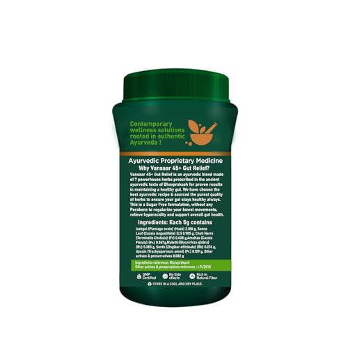 High fiber formulation for relief from constipation regularising bowel movement relief from hyperacidity. It is a sugar-free ayurvedic non-habit forming formulation made with Senna leaves ajwain Choti Harre Amaltas Mulethi & sonth