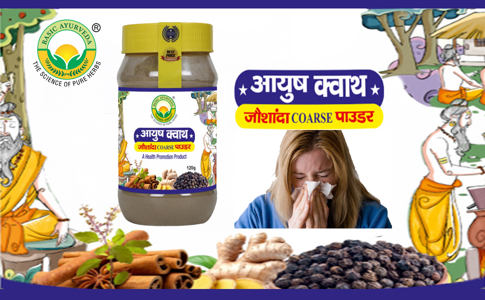 Basic Ayurveda Ayush Kwath Joshanda Coarse Powder 120g Pack of 2 | Herbal Kadha for Cough & Cold Relief
