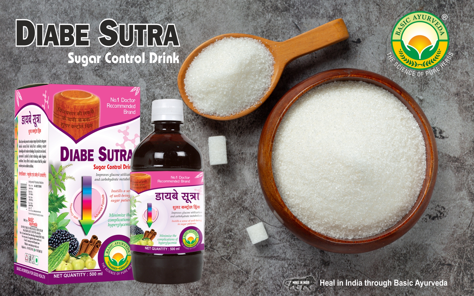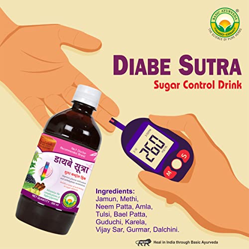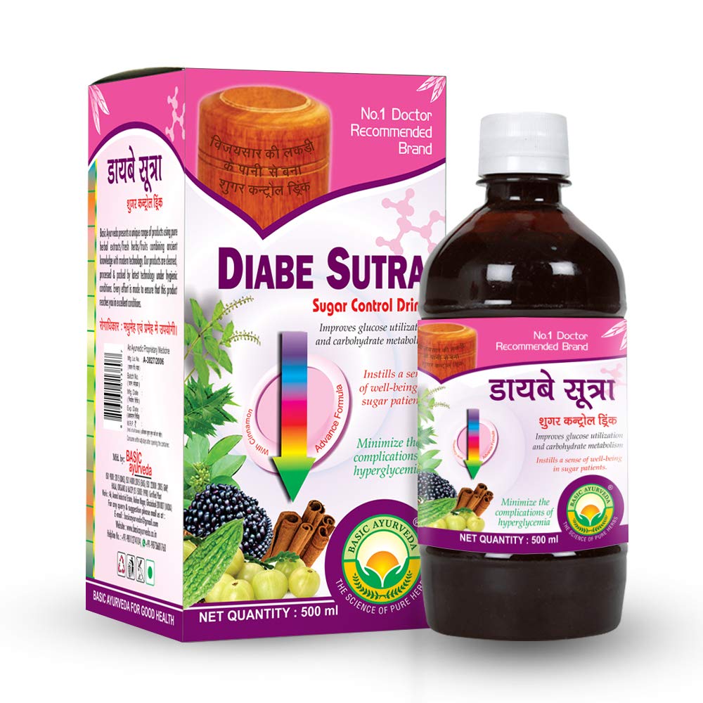 • Basic Ayurveda's Diabe Sutra Drink is an effective natural tonic for blood sugar. It contains herbal liquid extracts and fruit juice concentrates with tulsi which gives overall health benefits.