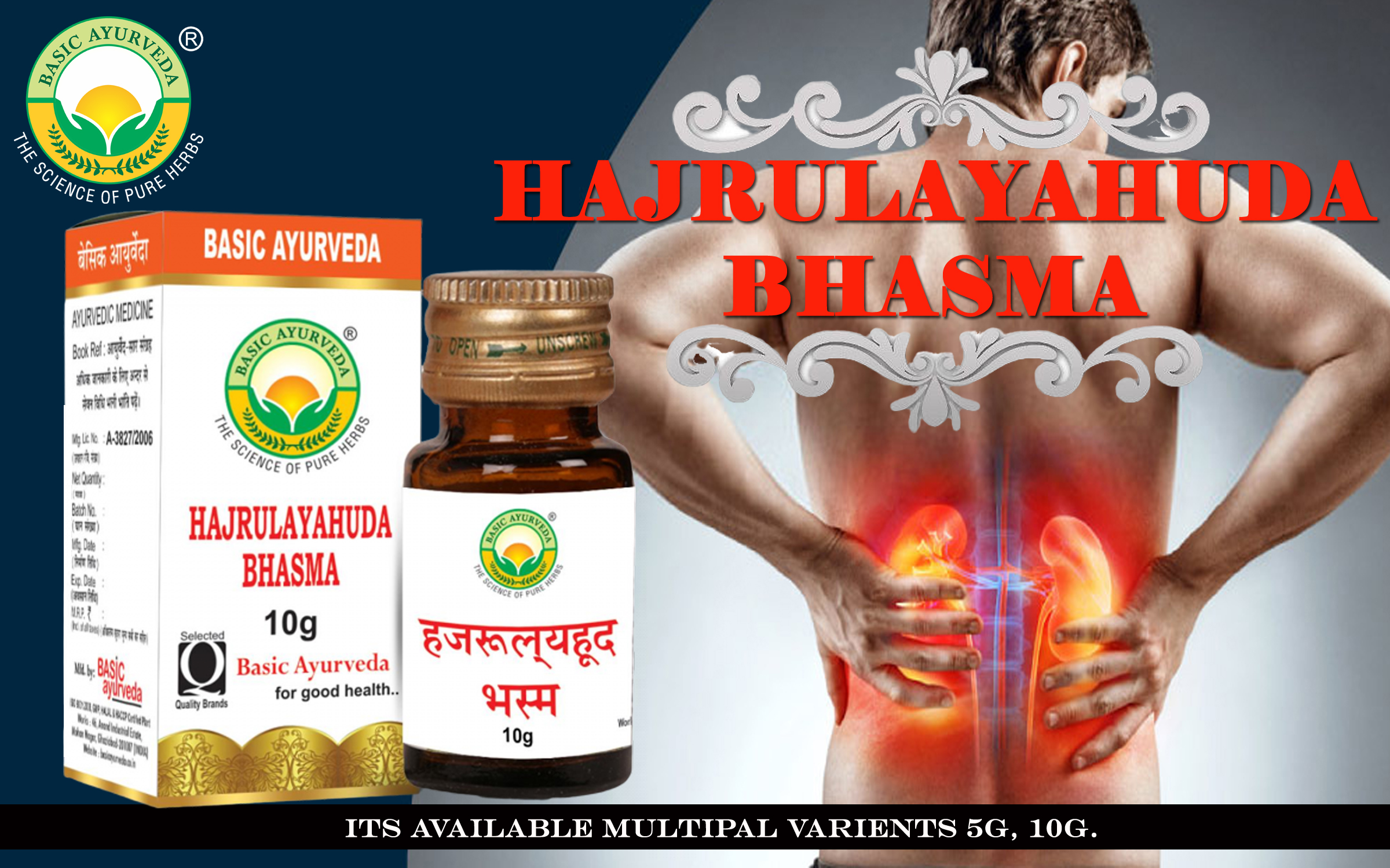 • Basic Ayurveda Hajrulayahuda Bhasma is an ayurvedic herbomineral preparation that has calcinated Zinc. It acts as an antilith and promotes better urination in conditions like urinary retention.