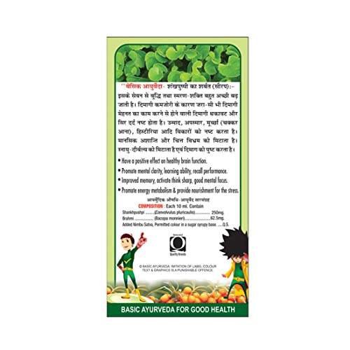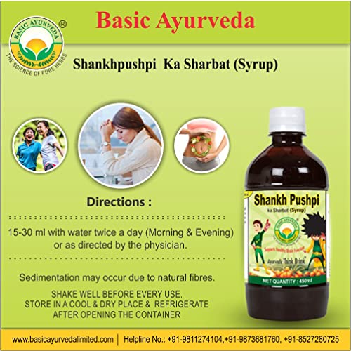 BASIC AYURVEDA Shankhpushpi Ka Sharbat Syrup 450ml | Ayurvedic Tonic For Support Energy | A Powerful Blend Of Ingredients & Advance