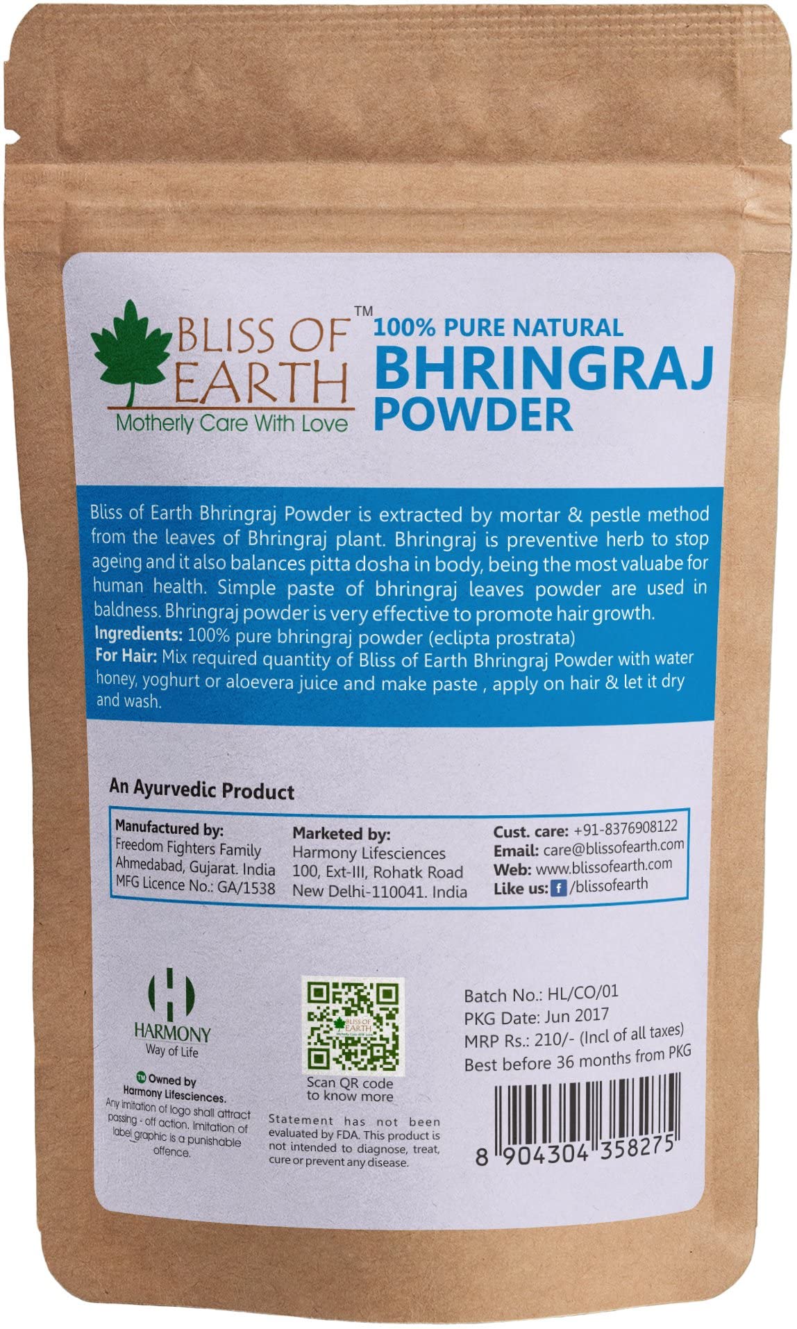 Bliss of Earth 100gm Bhringraj Powder Orgnaic Herbal Edible Great for Hair Mask Hair Grow & Skin Care