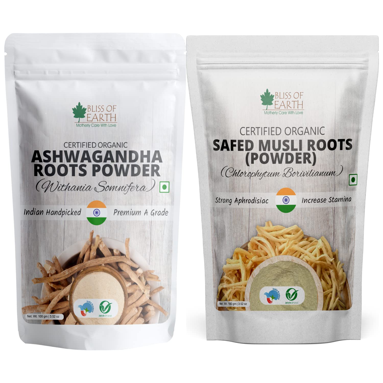 Bliss of Earth Ashwagandha Powder & Safed Musli Powder Great for Health & Wellness Both Men & Women 100gm Each