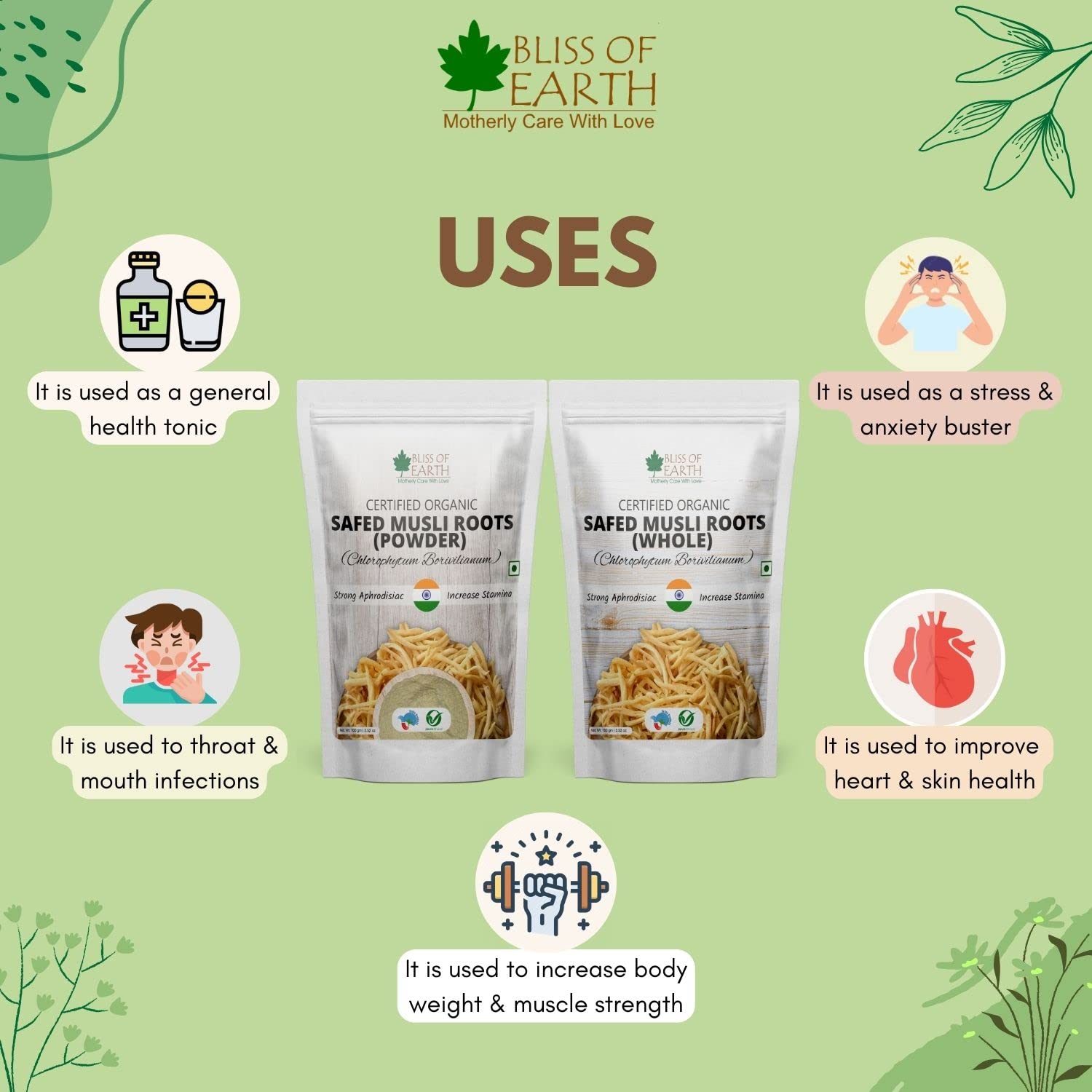 Our safed musli root can be used in a variety of ways such as adding it to smoothies teas or other beverages or as a cooking ingredient in various dishes.