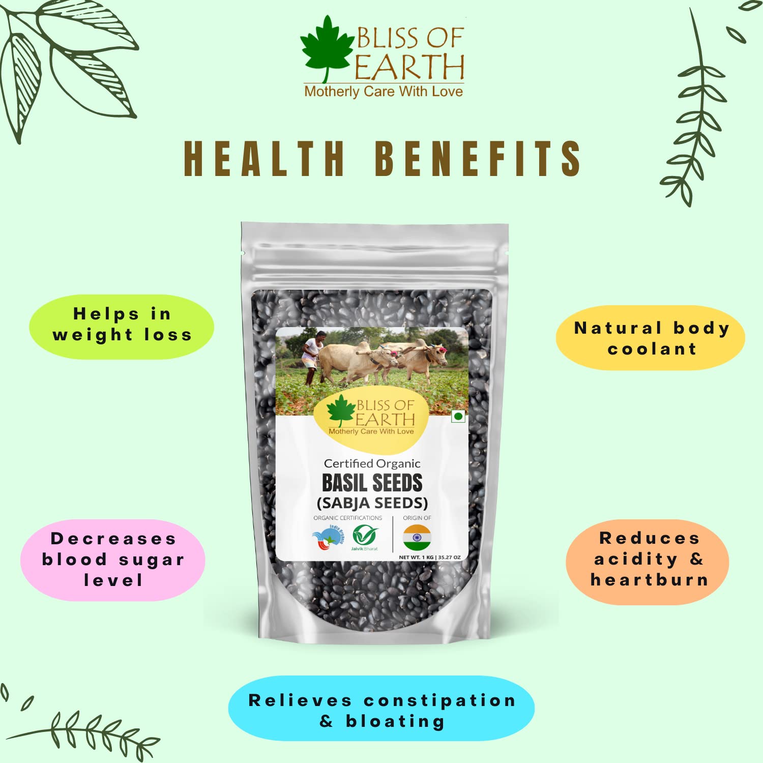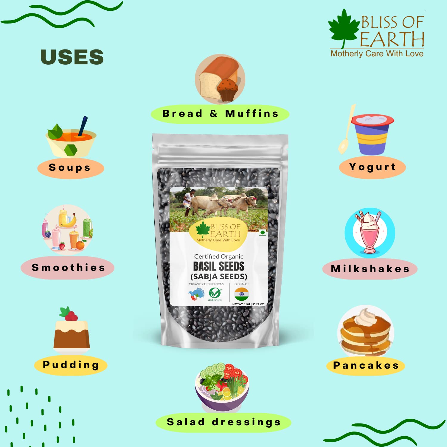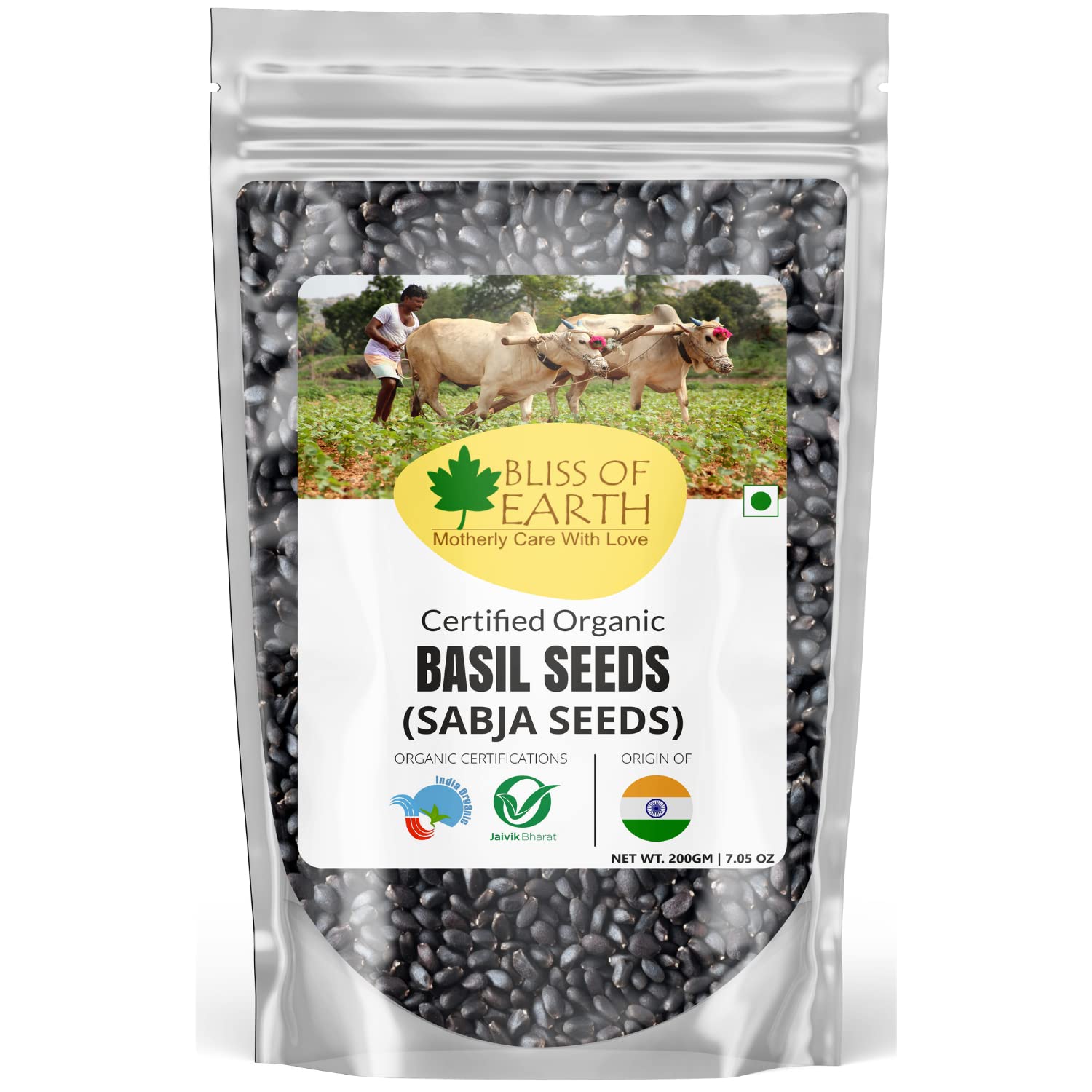 Bliss of Earth Certifed Organic Basil Seeds (Sabja) are used to add a unique flavour in food and beverages. basil seeds is a natural source of protien high in fiber a good source of minerals rich in plant base omega-3 fat & carbs. Preferably it can be eaten after soaking them in water for few minutes with many dishes.