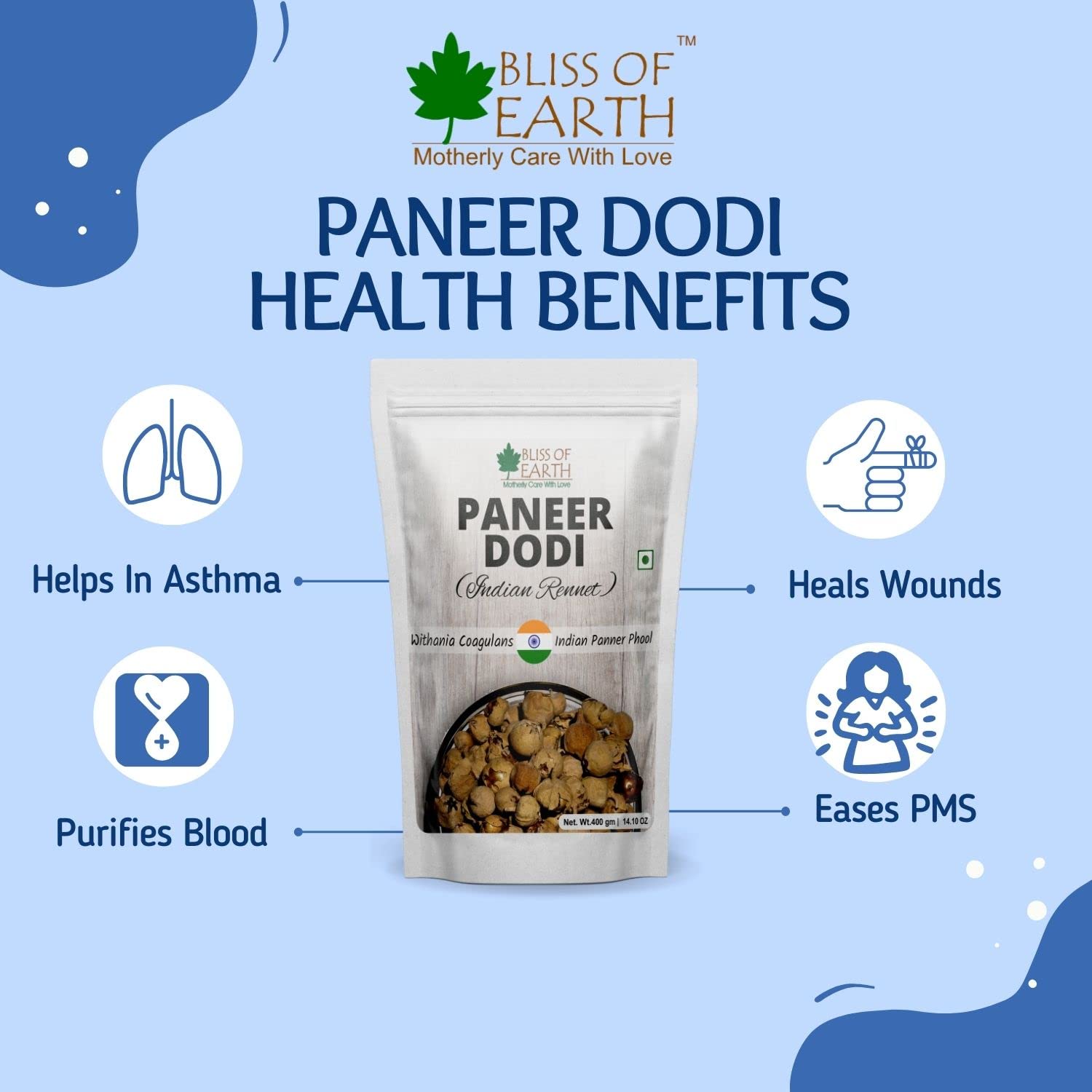 Bliss of Earth Paneer Doda (Indian Rennet) Paneer Phool for Diabetes Withania Coagulans Ayurveda Herb Good for Health 400GM