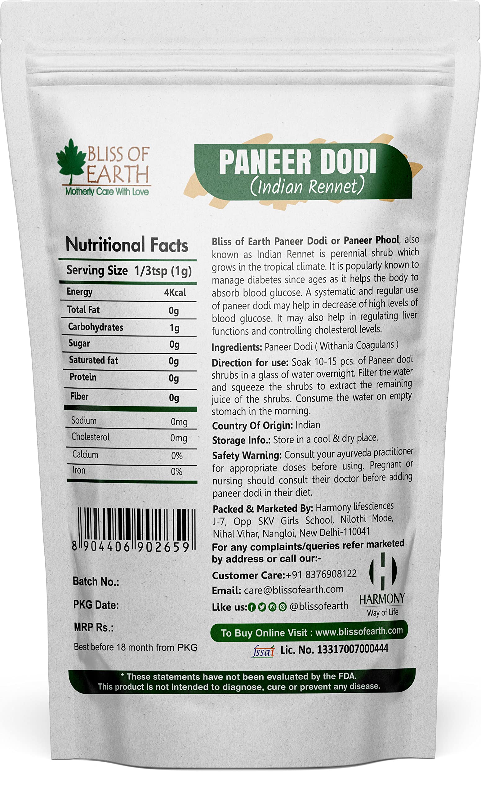 AUTHENTIC INDIAN HERB: Bliss of Earth Paneer Dodi or Paneer Phool also known as Indian Rennet is perennial shrub which grows in the tropical climate. We handpicked the best quality shrubs and pack them in vacuum bag so that you receive them in fresh and u