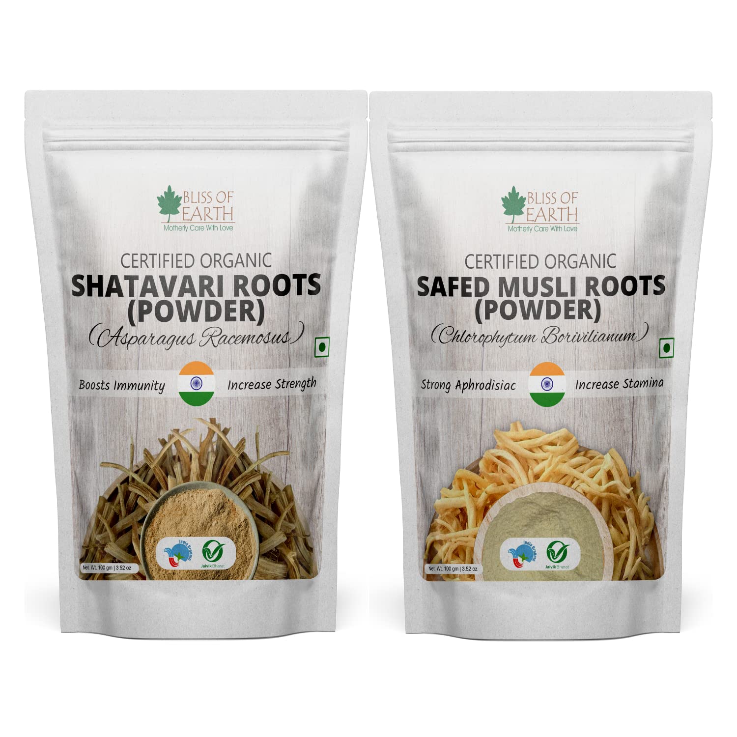 Bliss of earth Shatavari Powder Organic & Safed Musli Powder Organic Great for Health & Wellness Both Men and Women 100gm Each