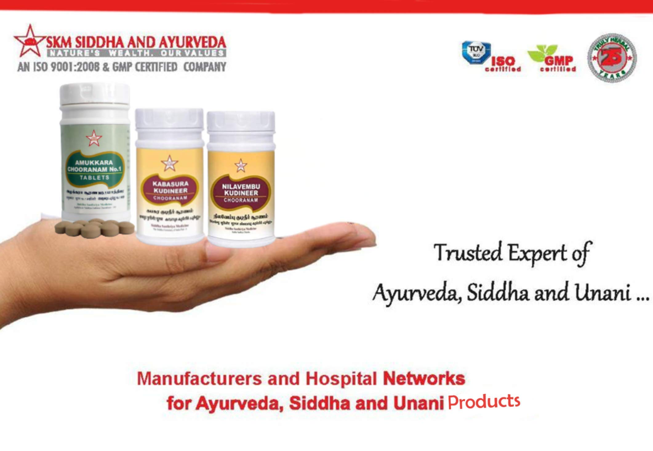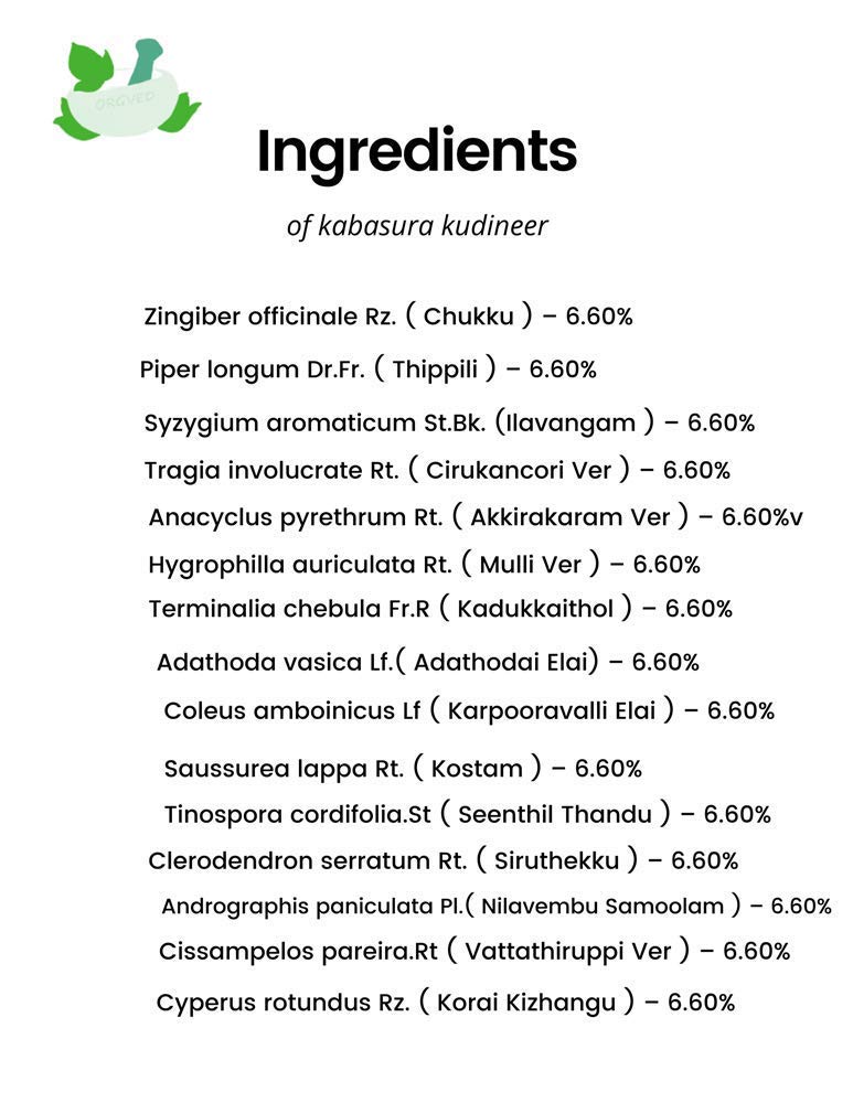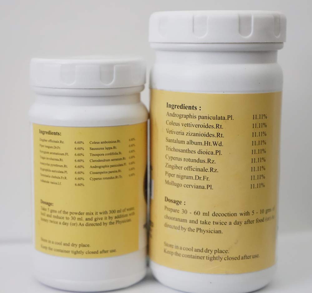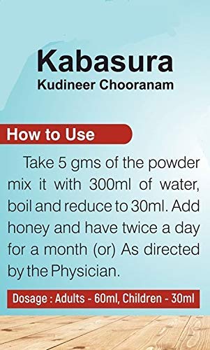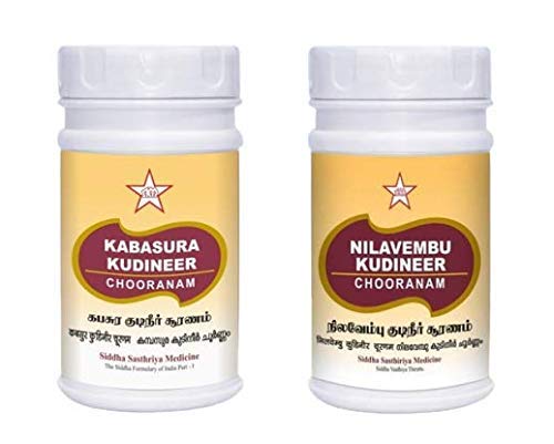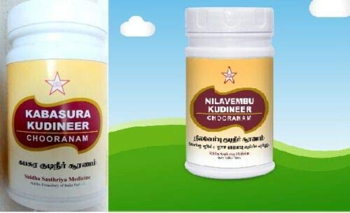 SKM Kabasurakudineer Powder is a coarse powder pale brown in Color with characteristic odour and very bitter taste. Useful for all gender 100% Chemical Free Powder That Contains No Added Chemicals. Ingredients: 15 Premium Natural Herbs: Ginger Piper longum Clove DusparshaAkarakarabha Kokilaksha Haritaki Malabar nut Ajwain Kusta Guduchi Bharangi Kalamegha Raja pata Musta Neer. SKM's Nilavembu Kudineer powder is an Ayurvedic Siddha product. Ingredients: Nilavembu Vilamichai Ver Khas Dried Ginger Black Pepper.