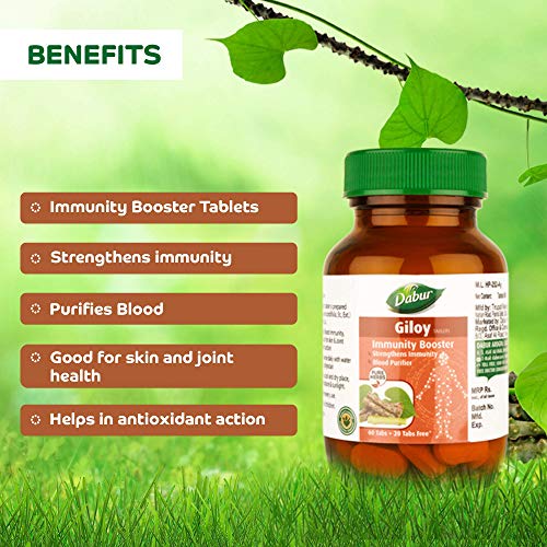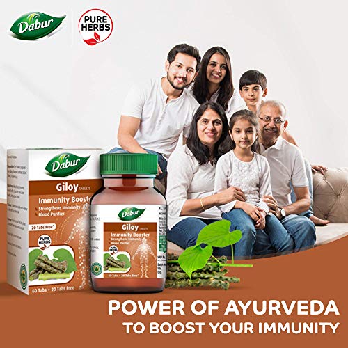 With over 130 years of expertise in Ayurveda Dabur has always been committed to the health and well-being of every household. Power packed with the age-old wisdom of Ayurveda Dabur Pure Herbs range of tablets is the latest offering from the house of Dabur in fulfilling this vision. The immunity boosting Dabur Giloy tablets in our range have the goodness of Giloy in it. Giloy is considered a natural anti-septic and blood purifier that helps in control acne allergies etc by eliminating harmful bacteria and toxins from your blood. In various studies Giloy has been found to protect against lead induced toxicity &Â free radicals during conditions like aflatoxicosis indicating potential benefits as blood purifier.It helps boost immunity and has been reported to augment insulin secretion that can help promote healthy blood sugar level thereby making Dabur Giloy Tablets a perfect choice for your overall health. Prescription Required : No