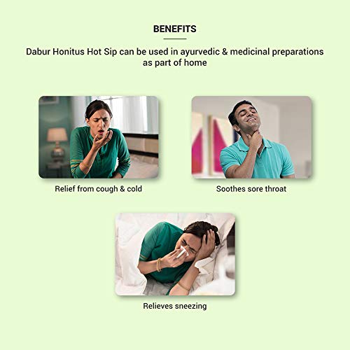 Dabur honitus hot sip is a unique blend of 15 powerful ayurvedic herbs including shunthi kantakari and tulsi combined with honey to give you a potent and effective natural formulation for effective relief from cough and cold. Just stir it in hot water drink and experience the goodness of ayurveda.