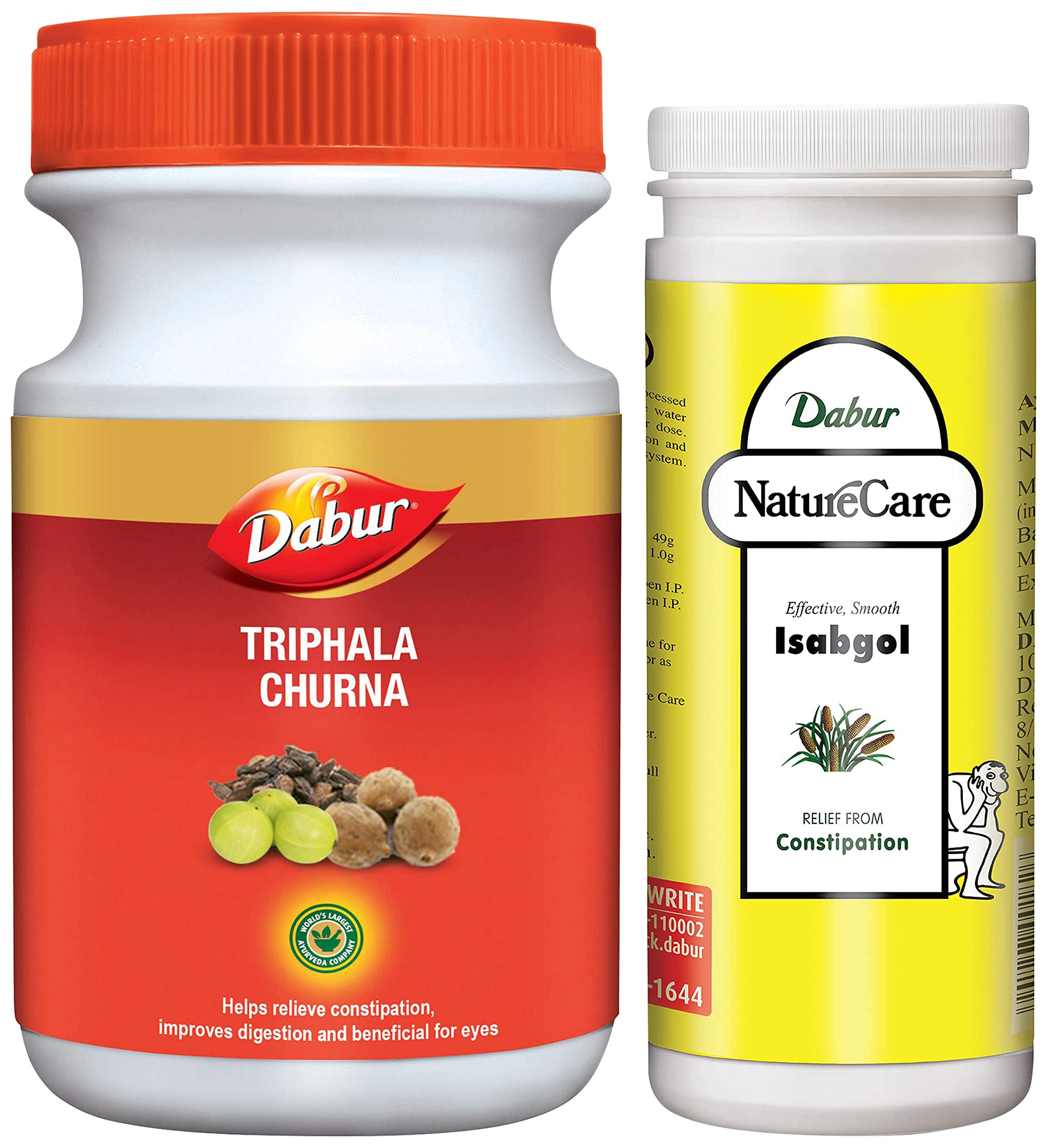 Dabur Triphala Churna Ayurvedic Remedy for Gastro Intestinal Health - 500 gDabur Triphala Churna is an ayurvedic medicine for Indigestion which is a highly-effective laxative widely used for its colon cleansing and detoxification action as recommended by ayurveda. It is a pioneer product from the house of Dabur based on years of Ayurvedic research and highly recommended in case of digestive problems. It helps maintain overall health by harmonizing digestive functions and cleanses the stomach.Dabur Nature Care Isabgol| Provides Effective Relief from Constipation -375gmNature care Isabgol is value-added Isabgol with super refined isabgol. Its super fine husk easily dissolves in water giving easy consumption. It gives smooth and effective relief from constipation.