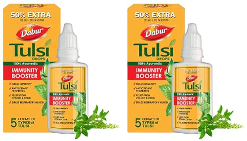 Dabur Tulsi Drops : 30ml (20ml + 10ml Free) | Contains Extracts of 5 Rare Tulsi | Boosts Immunity | Cough And Cold Relief | 100% Ayurvedic | Builds Respiratory Health (Pack of 2)