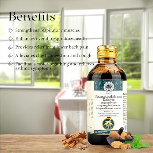 Dasamoolakaduthrayam Kashayam is a herbal decoction used for the treatement in cough cold and common cold. Consuming it on regular basis helps in reducing the common cold as it is beneficial in nasal congestion and make breating feel easier. It also helps in Sinus problems which helps to possess anti-inflammatory properties. Soothes cough and shortness of breath. Alleviate headache and pain on the flanks. Improves digestion.