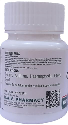 Cough Asthma Haemoptysis Fever Cold. General Health Tonic, Restorative, Nutritive & Appetizer, Useful for patients suffering from low blood pressure . Useful for various disorders related to respiratory system, Reduces Stress, Rich in Antioxidants and other Nutrients.