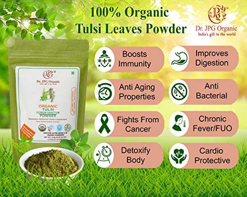 Dr. JPG Organic Tulsi leaf Powder For Immunity Cough & Could 228g / Ocimum Tenuiflorum/INDIA ORGANIC Certified / 114g Pack of 2