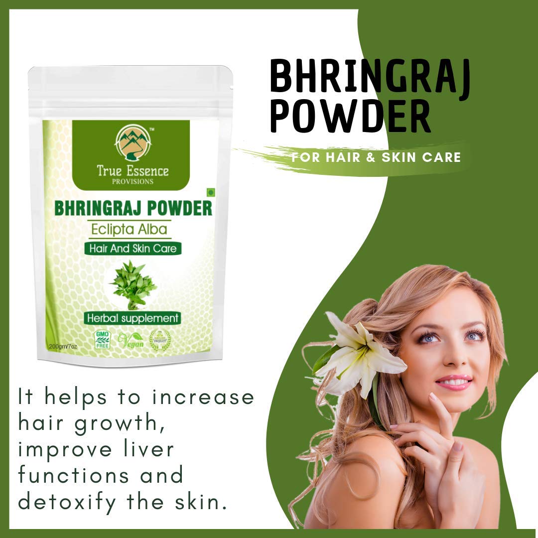 Bhringraj Powder prevents your hair from getting damaged reduces premature graying makes your hair roots strong gives it complete conditioning stops hair splitting boosts healthy hair growth and much more. It is the secret to shining and vigorous hair wit