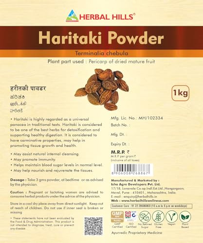 Herbal Hills is a leading Manufacturer Supplier & Wholesaler in India of Ayurvedic product Harde / Haritaki powder. Haritaki or Harde also called as Terminalia chebula is synergistcally processed with highly advanced technology. Herbalhills is India Largest Online Selling Brand In Pure Herb Powders. Herbalhills Products Are Made Out Of Best Quality And Authentic Ayurvedic Herbs Available In India Which Is Specially Selected And Manually Graded To Give Best Product. Haritaki Powder Terminalia Chebula powder may act as a bowel cleanser and supports healthy Digesstion. Harad powder is made from fruit of Terminalia chebula. It is one of the ingredient of Triphala. It has antioxidant colon cleansing and rejuvenating properties.