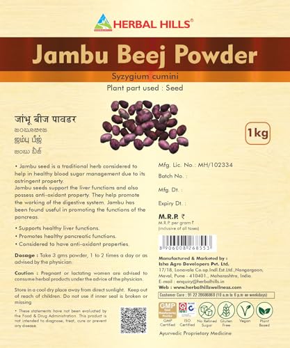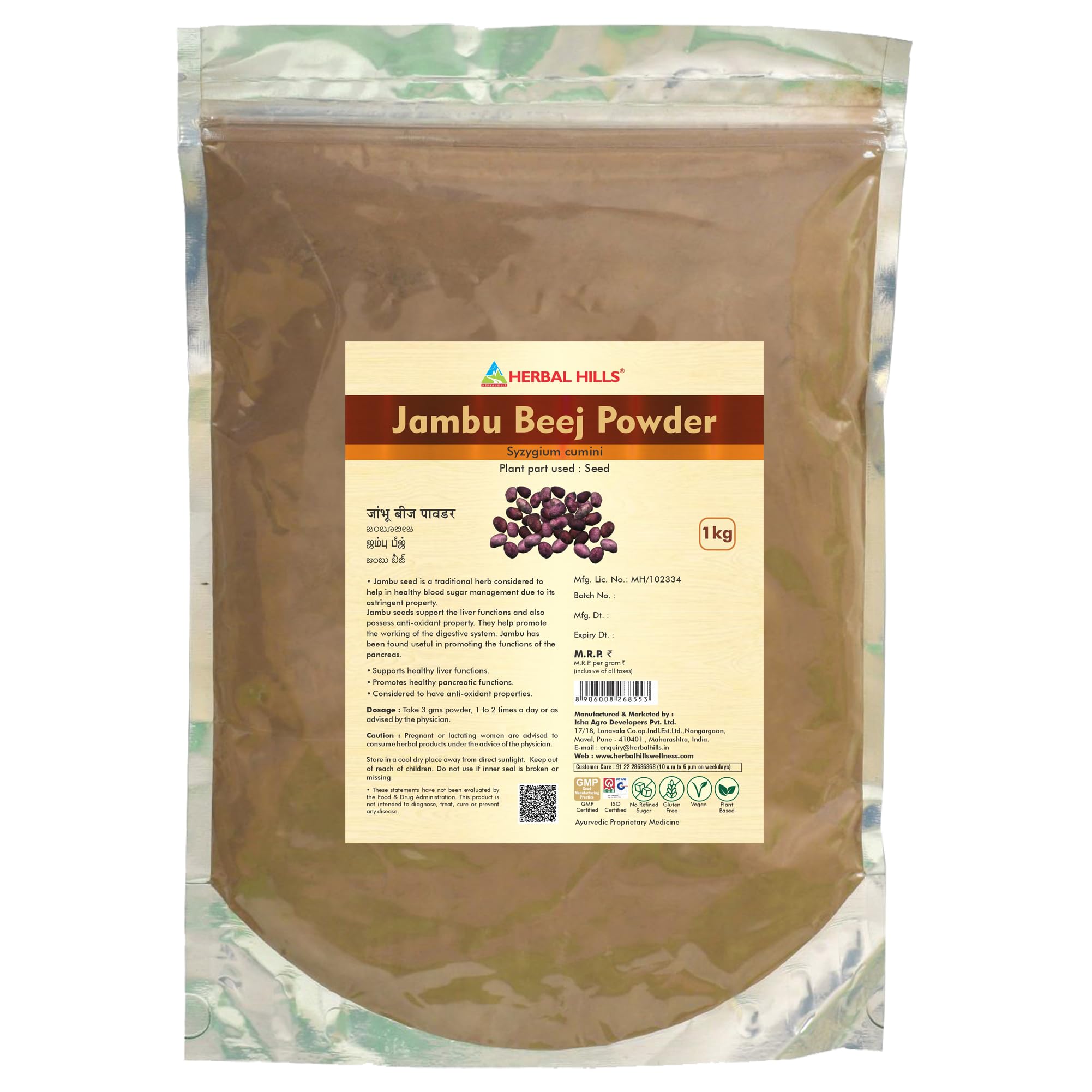 Herbal Hills is a leading Manufacturer Supplier & Wholesaler in India of Ayurvedic product jambu seed powder/ Jamun powder. Jamun seed is also known as Java plum / Eugenia jambolana which is synergistically processed with highly advanced technology at Herbalhills. Our products are made out of best quality and authentic Ayurvedic herbs available in India which is specially selected and manually graded to give the best product the quality and efficacy is 100% guaranteed. Jamun powder for Diabet can be used as Ayurvedic churan and may support healthy Sugr levels. Jamun powder is made from the seeds of Eugenia jambolana. It has anti-scorbutic and diuretic properties. Jambu seeds have been mentioned to be useful in Prameha¢ as per Ayurvedic texts. It also has hypoglycemic deigestive and astringent properties.