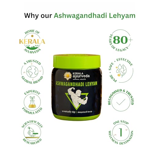 BOOSTS STAMINA AND VIGOR: Elevate your strength and stamina with Kerala Ayurveda Ashwagandhadi Lehyam a potent Ayurvedic medicine crafted with ashwagandha powder and vajikarana herbs. This health supplement is the ultimate energy booster and power supplem