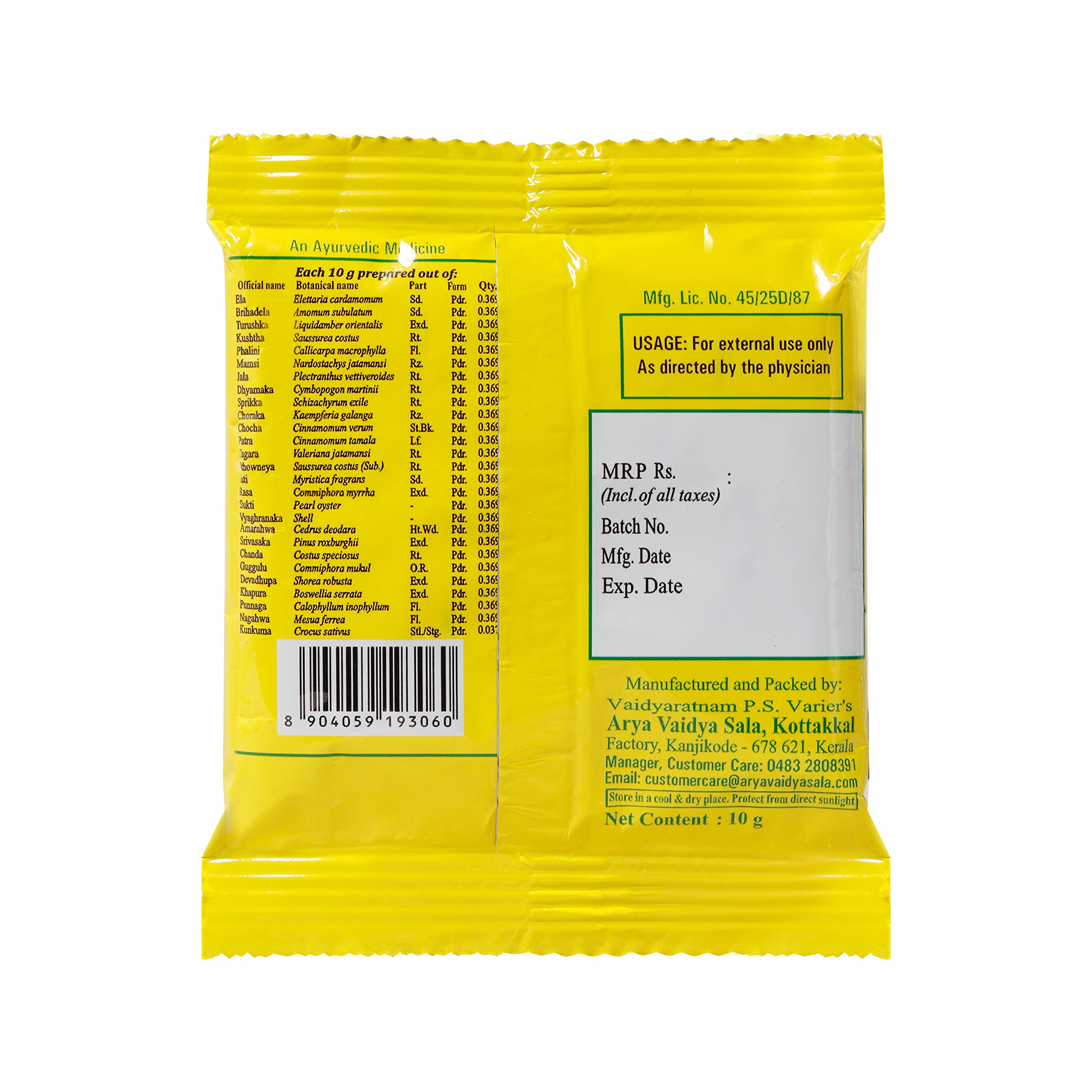 Kottakkal ayurveda Eladi Churnam - 10 gm For Improving Health & Wellness Naturally (Pack of 10)