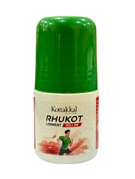 Experience fast effective and natural relief from joint and muscle pain with Kottakkal Rhukot Ayurvedic Roll-On Liniment. Formulated by the renowned Arya Vaidya Sala this liniment blends time-tested Ayurvedic herbs like Devadaru Camphor Menthol and Gaultheria oil to deliver targeted relief right where you need it. Whether youâre dealing with arthritis back pain sore muscles or joint stiffness Rhukotâs easy-to-use roll-on applicator ensures a mess-free and convenient way to soothe discomfort reduce inflammation and restore mobility. Ideal for people with active lifestyles or those suffering from age-related joint issues.