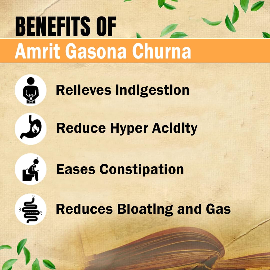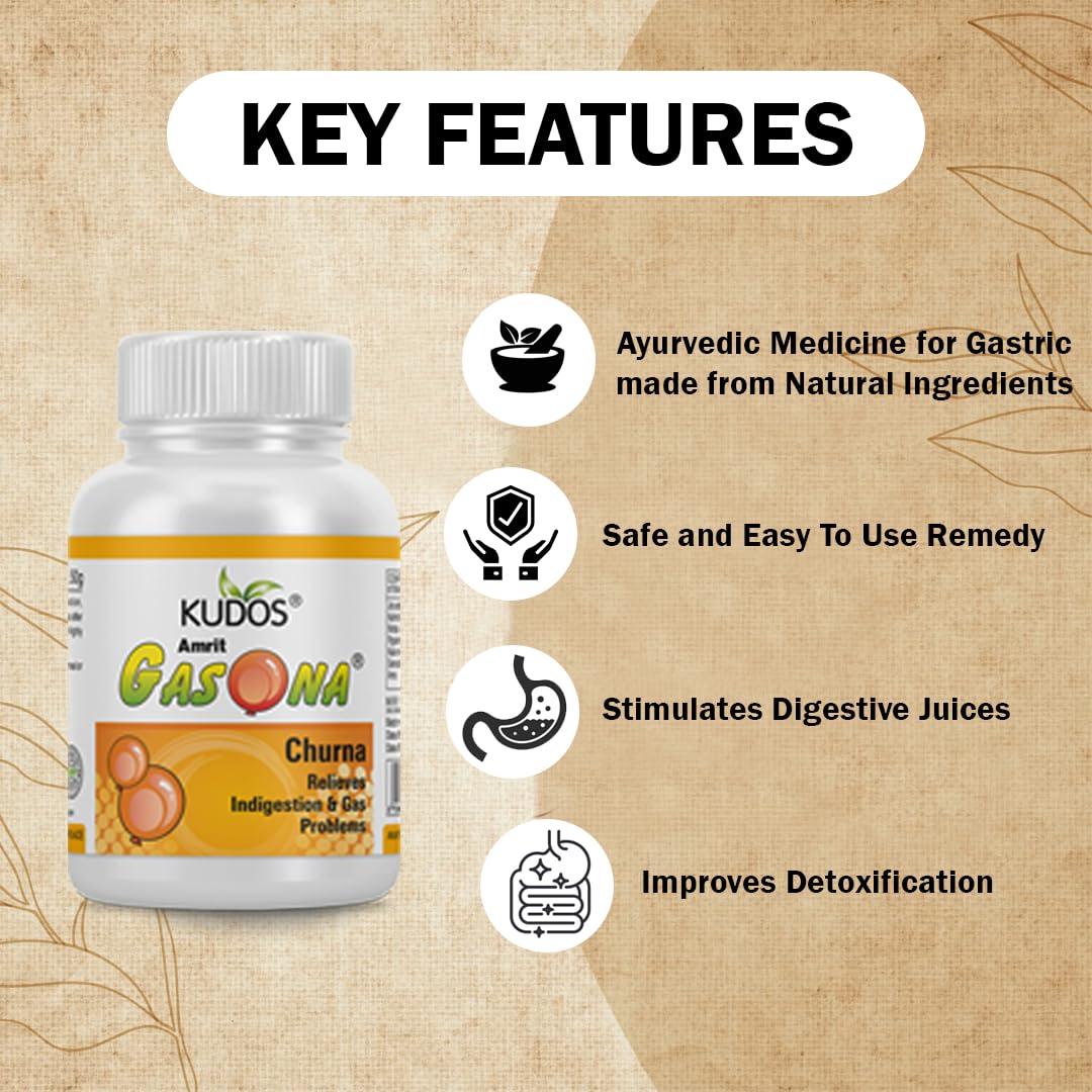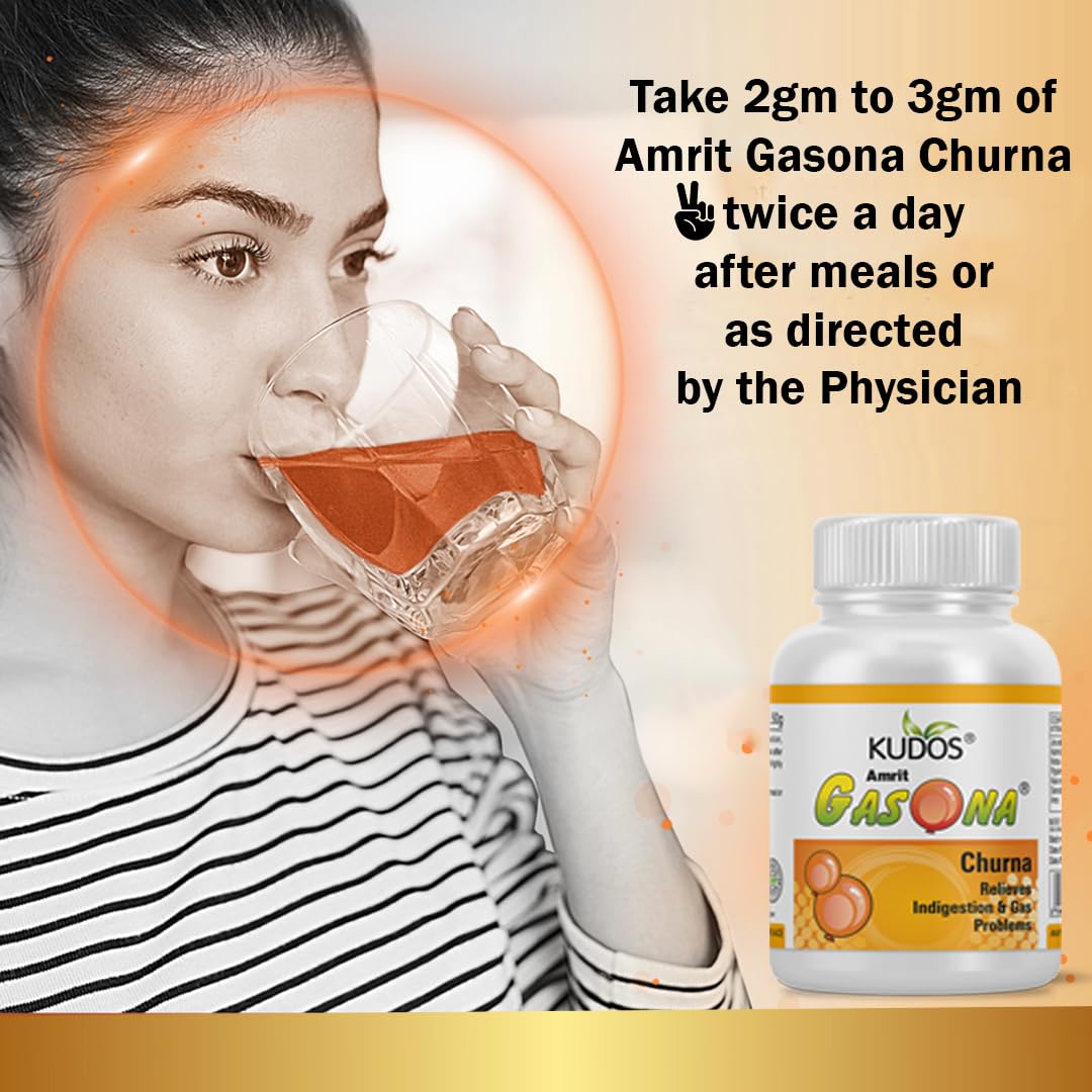 Kudos Amrit Gasona Churna 50g | Indigestion Relief | Ayurvedic Medicine for Gastric Problem (Pack of 9)