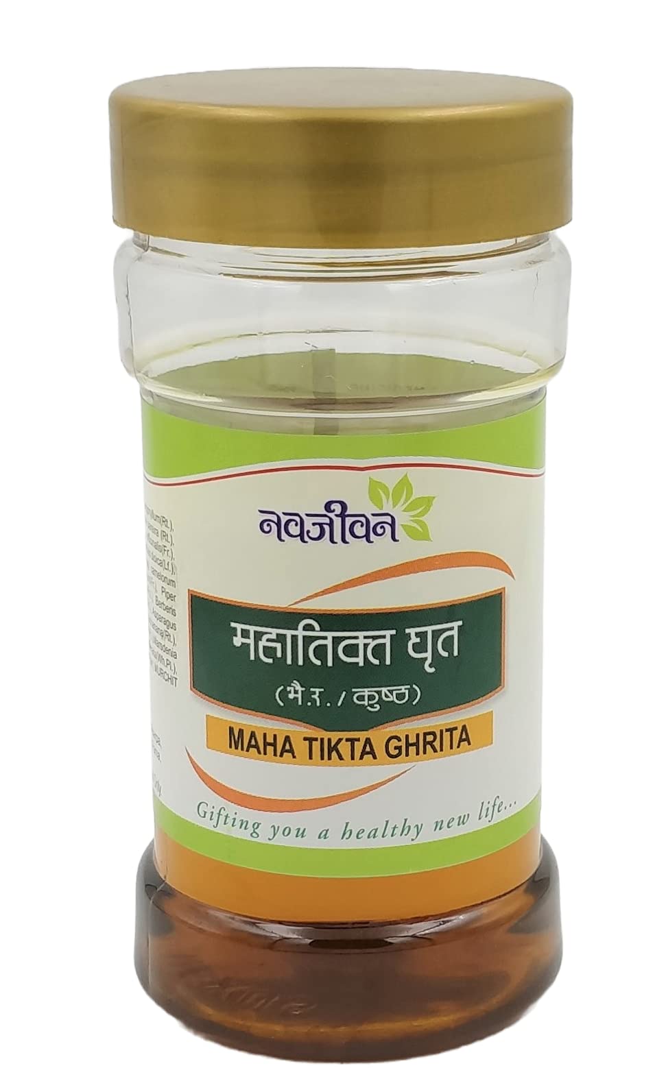 Mahatiktaka Ghrita used in Amlapitta (Dyspepsia) Pandu Roga (Anemia) Raktapitta (Bleeding disorder) Visarpa (Erysipelas) Kushtha (Diseases of the skin) Arsha (Haemorrhoids) Raktarsha (Bleeding haemorrhoids) Vatarakta (Gout) Visphota (Blister) Pama (Eczema) Pidaka (Carbuncle) Menorrhagia or Metrorrhagia or both Gandamala (Cervical lymphadenitis).