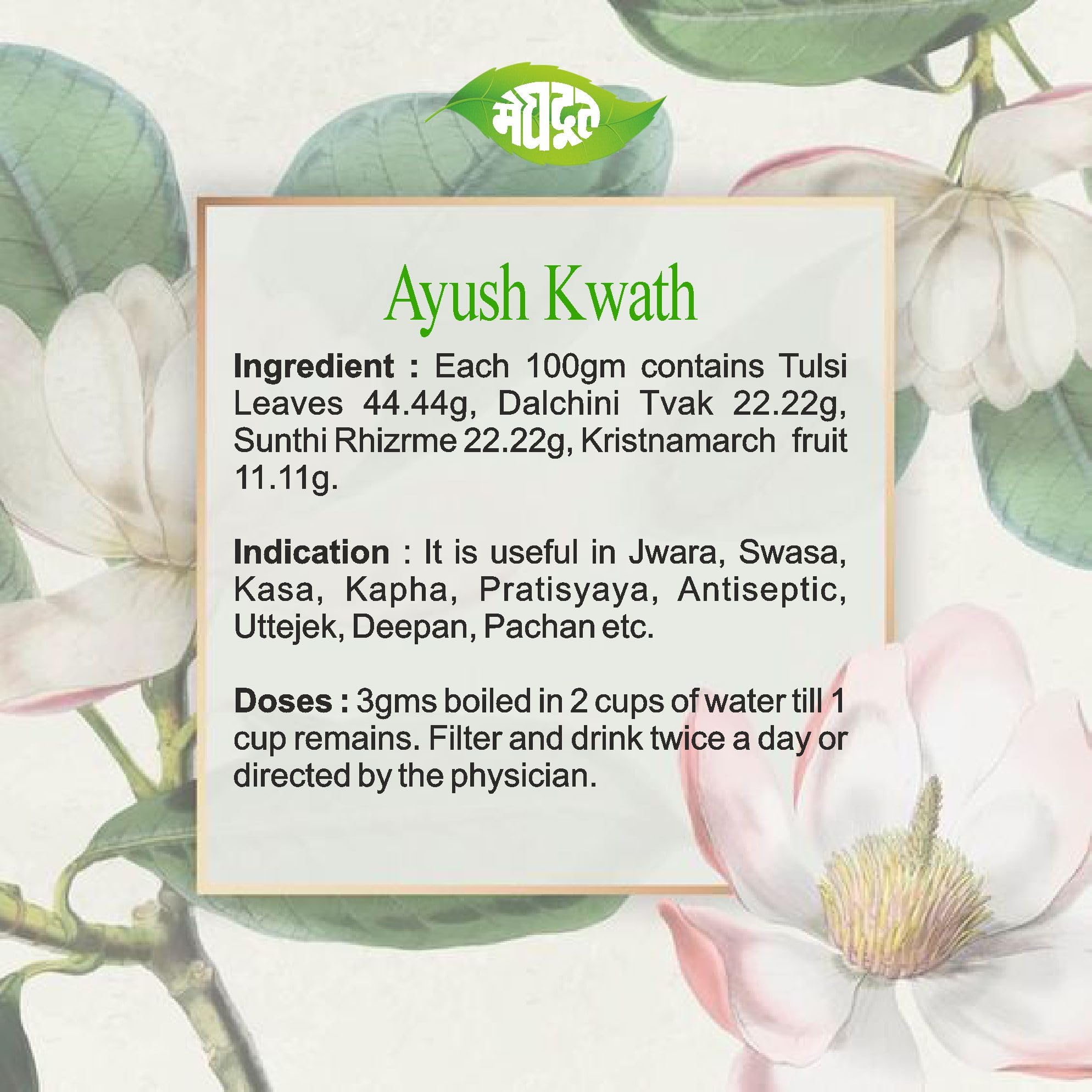 Meghdoot Ayurvedic Ayush Kwath Kadha Immunity Booster Herbal Drink with Tulsi Dalchini Sunthi and Black Pepper for Respiratory Health and Cold Cough Relief 100gm (Pack of 4)