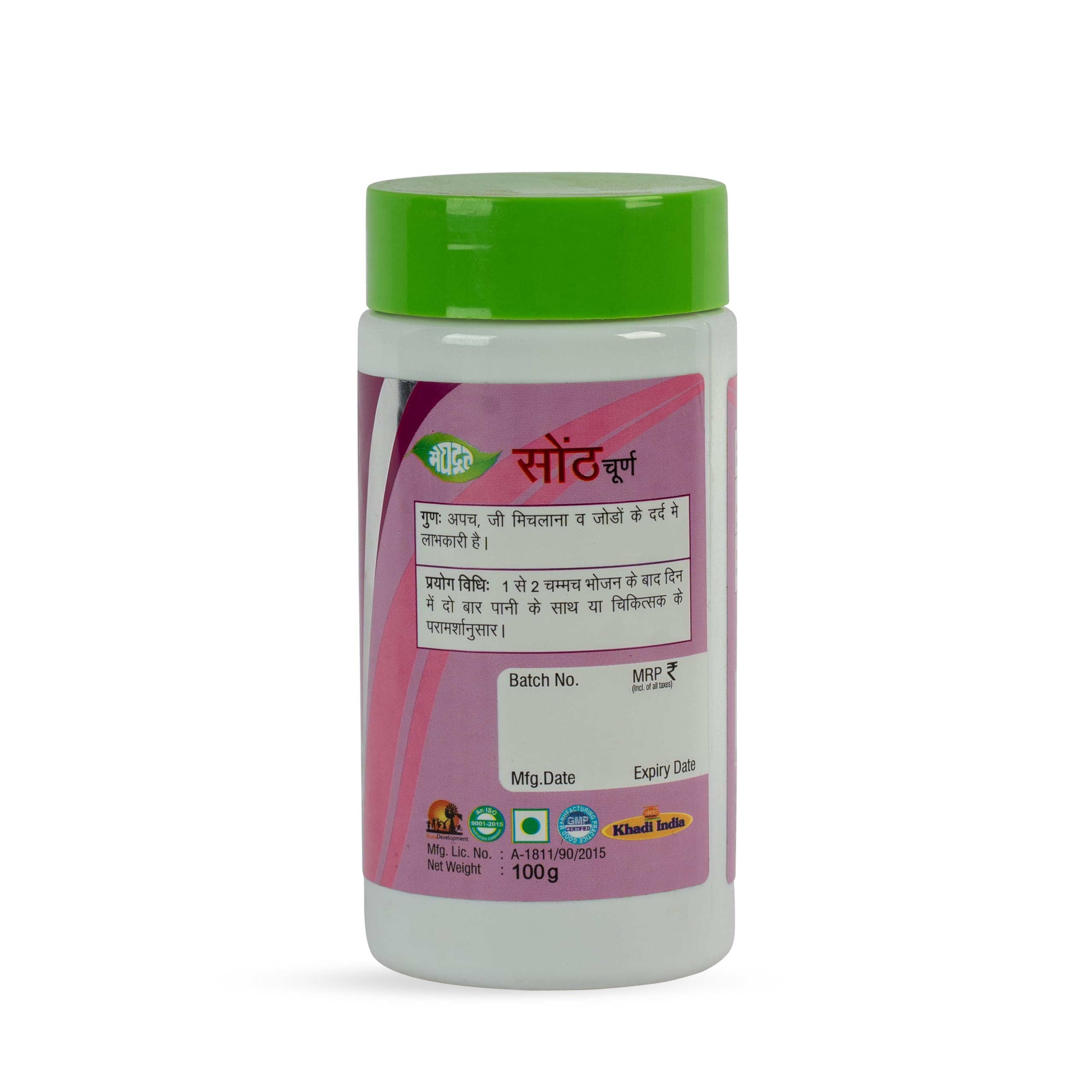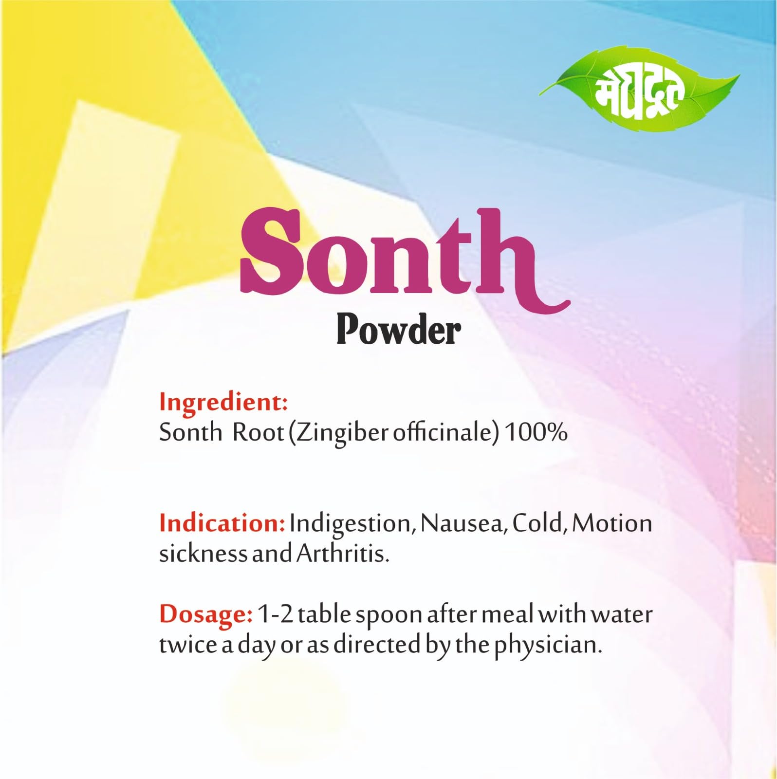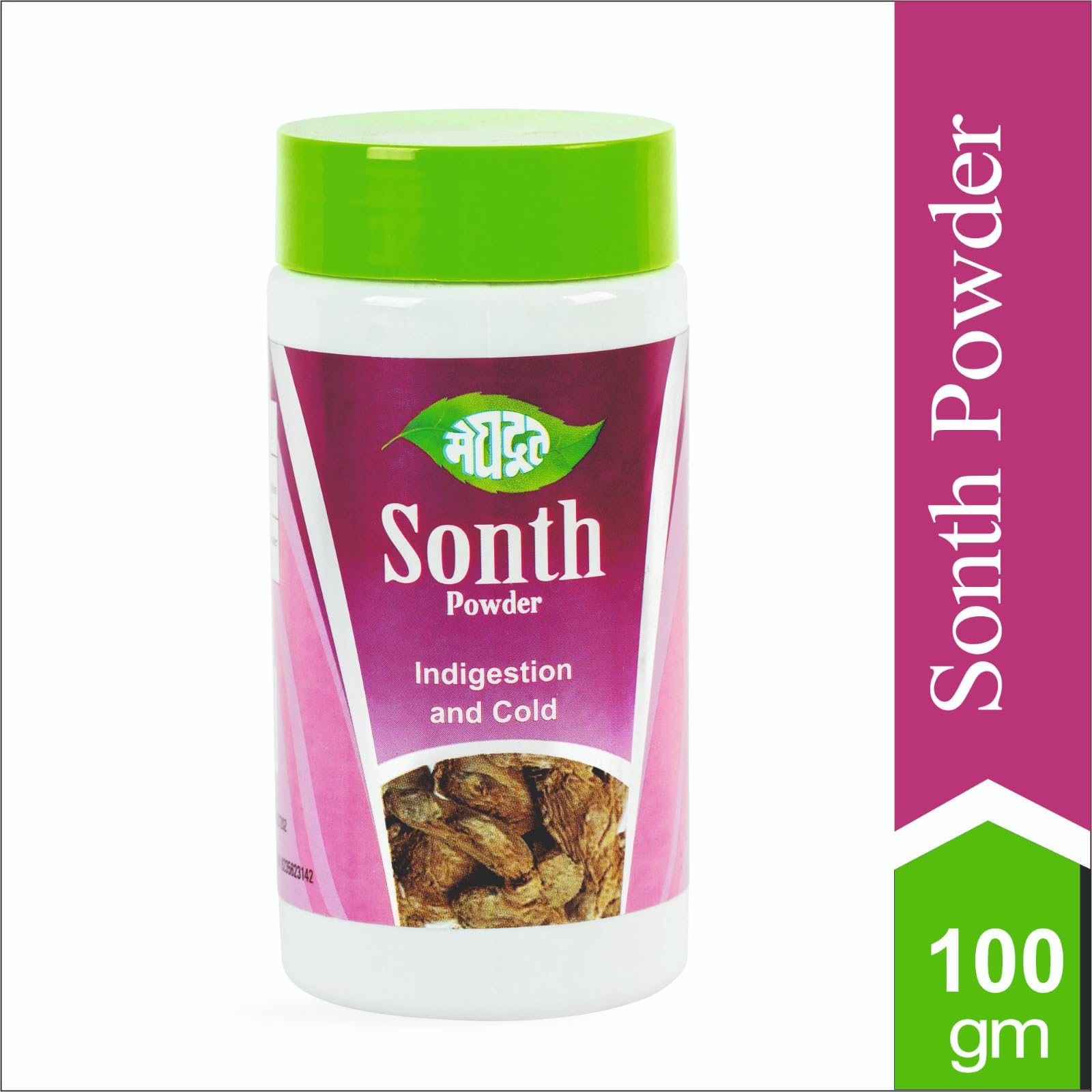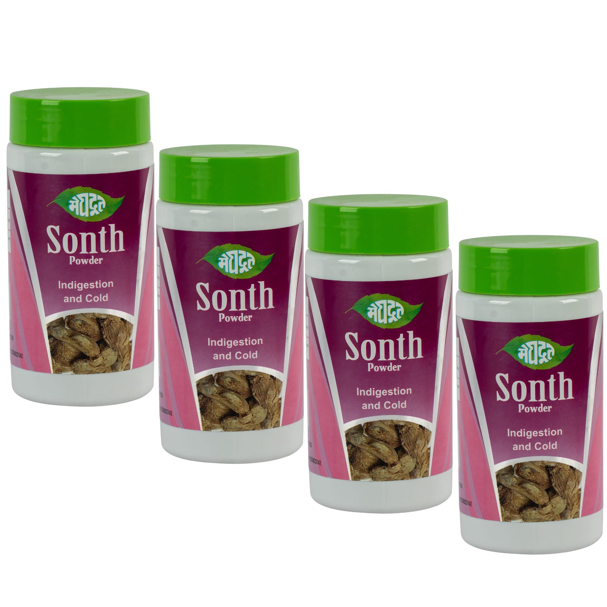 MEGHDOOT Ayurvedic Sonth Powder (100% Natural Extracts of Sonth Root/Dry Ginger Powder - Zingiber officinale 100gm Pack of 4) is a premium herbal supplement made from pure high-quality dry ginger (sonth). Known for its exceptional health benefits this powder is a natural remedy that has been used for centuries in traditional Ayurvedic medicine. Sonth powder aids in digestive health by improving digestion reducing bloating and relieving symptoms of indigestion and nausea. It also has anti-inflammatory properties that help support the immune system and alleviate inflammation throughout the body. The natural antioxidants in ginger help combat oxidative stress supporting overall wellness and slowing down the aging process. Apart from being a digestive aid Sonth powder is a popular remedy for respiratory issues like coughs and colds as it helps clear congestion and soothe throat irritation. It also boosts metabolism making it useful in weight management and fat-burning. This 100% natural chemical-free Sonth powder is easy to incorporate into your daily routine.