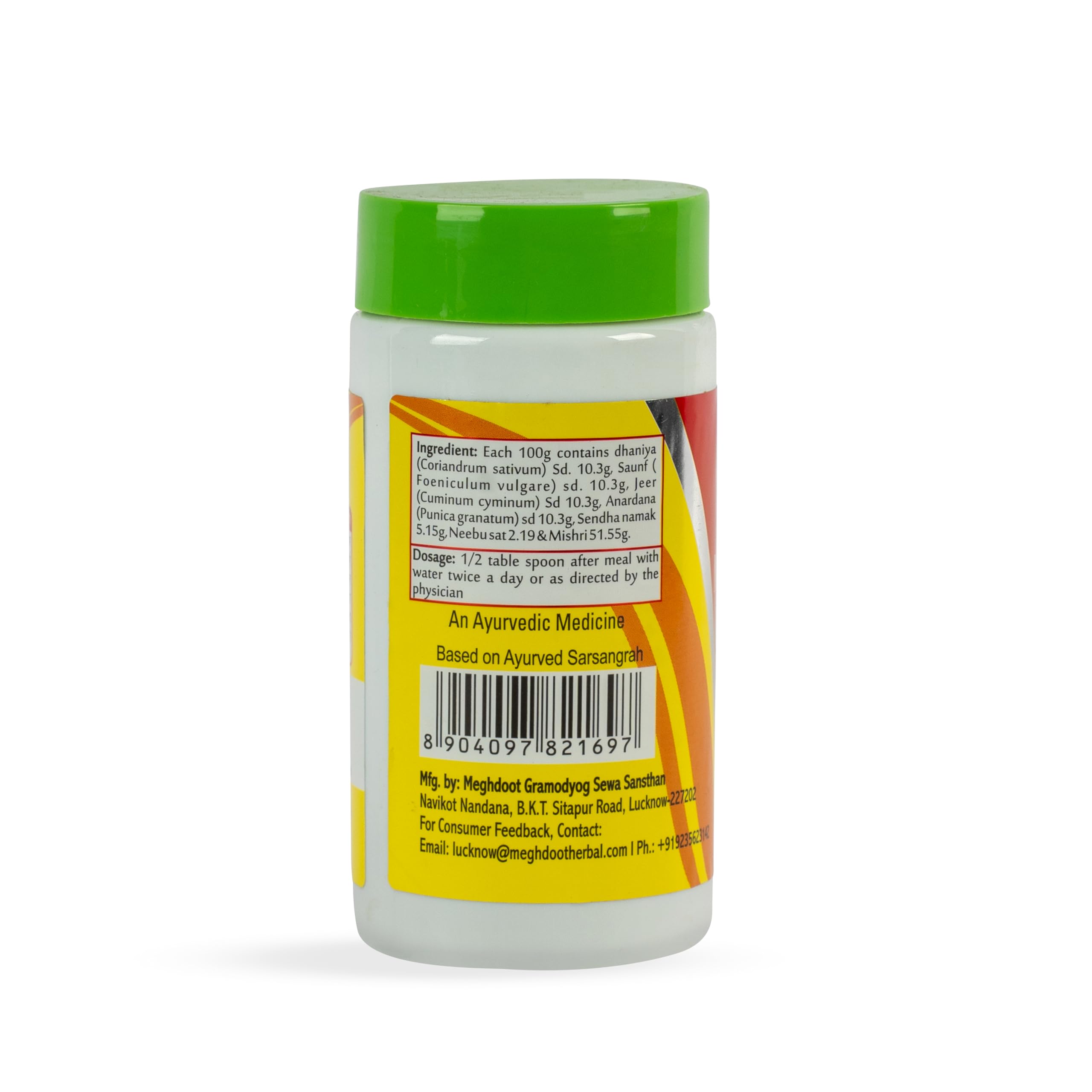 Meghdoot Meetha Swadistha Powder Ayurvedic Digestive Churna with Saunf Kalajeera Pipal Choti and Ajwain for Digestion Relief and Taste 100gm (Pack of 4)