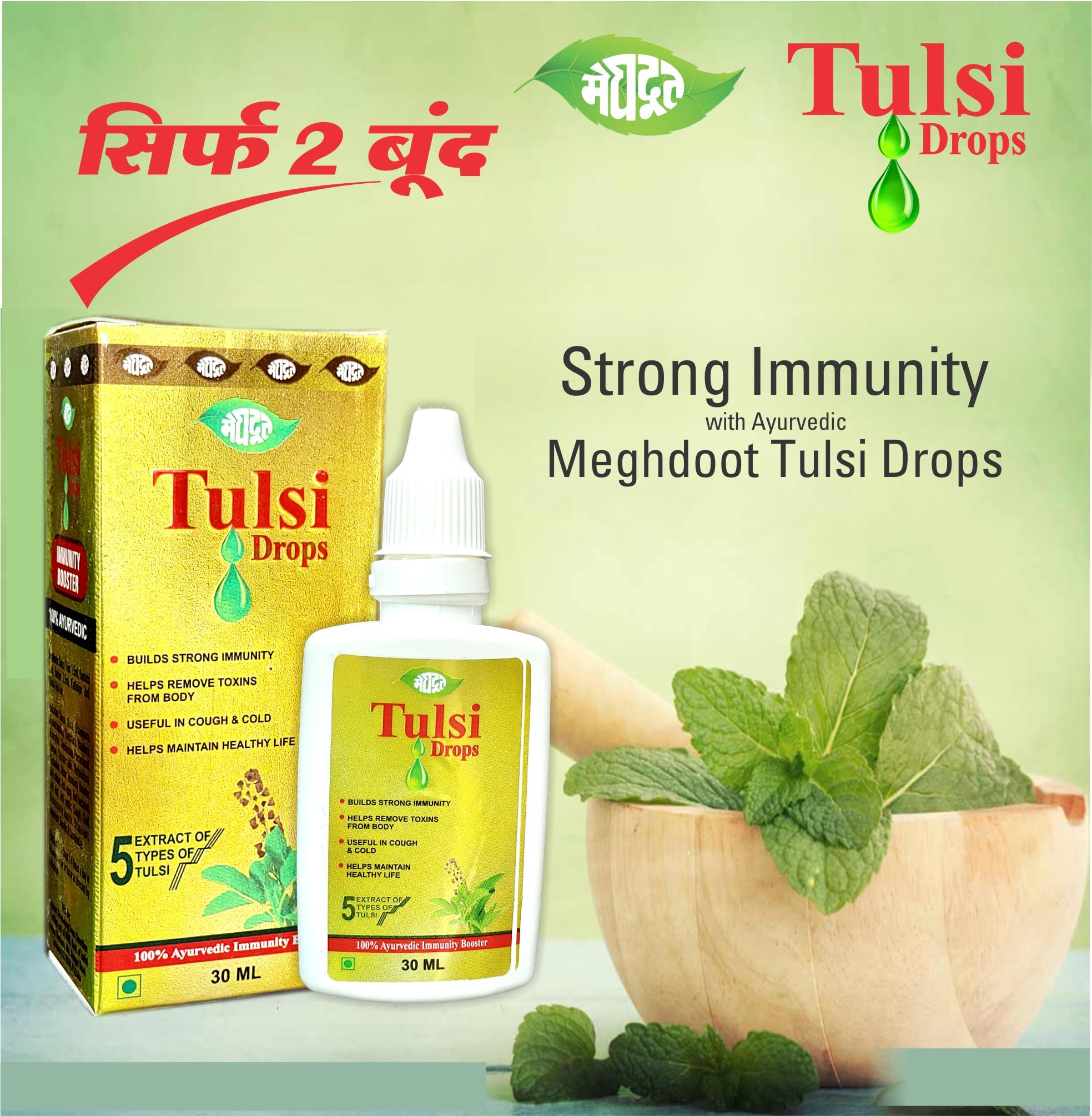 Meghdoot Tulsi Drops 30ml for Strong Immunity - For Natural Immunity Boosting | Cures Common Cough and Cold | Provides Anti-Oxidant Effect | 100% Natural & Vegan | 30ml