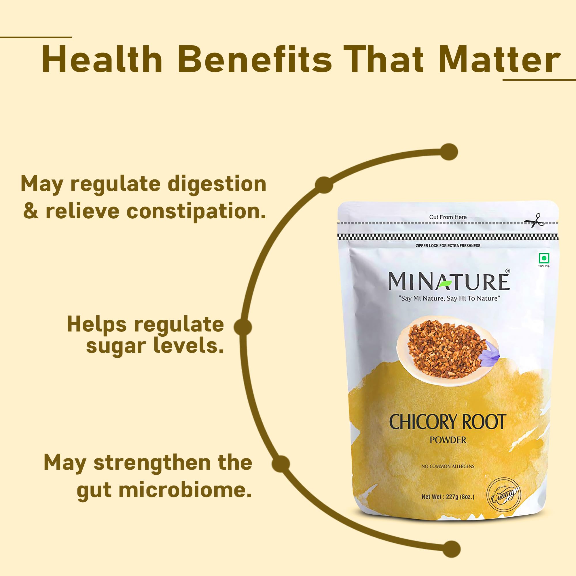 mi nature Chicory Root Powder | Cichorium intybus | Blue Daisy/Dandelion/Sailors | Coffee Alternative Acid Free Caffeine Free | 100% Natural powder | from India.| 227g (8 oz.)