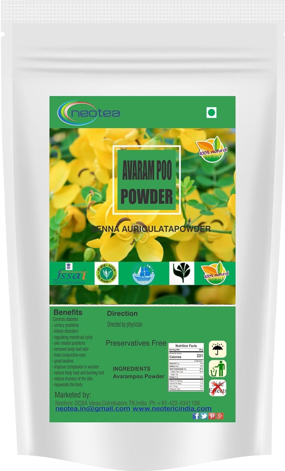 Neotea avarampoo powder | senna auriculata. Neotea a brand of health and household vitamins and dietary supplements. The products spectrum we offer to our customers includes Dry Fruit Herbal Powder Organic Cocoa Powder and many more.